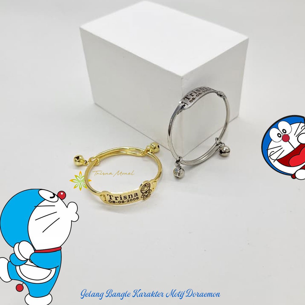 Adjustable free gelang monel !!! gelang karakter ukir nama size anak sampai dewasa motif Doraemon