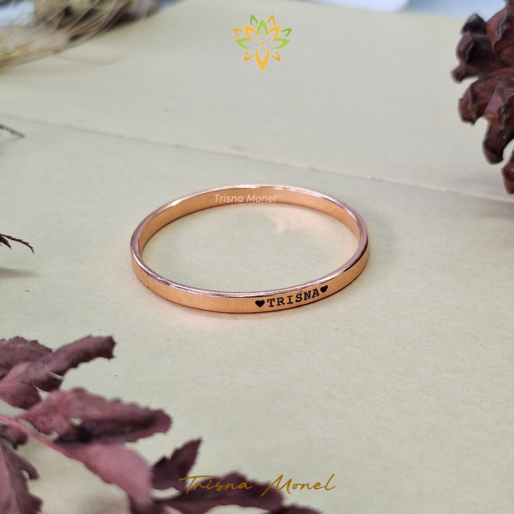 Produk tersebut dibuat dari bahan kuningan murni dengan ketebalan bahan 3 ml yang di lapisi warna Rose gold atau kami sepuh dengan warna rose gold. Disamping itu juga gelang tersebut kami coating / kami lapisi anti gores.., sehingga gelang tersebut menjadi lebih awet, aman an nyaman bila dipakai..