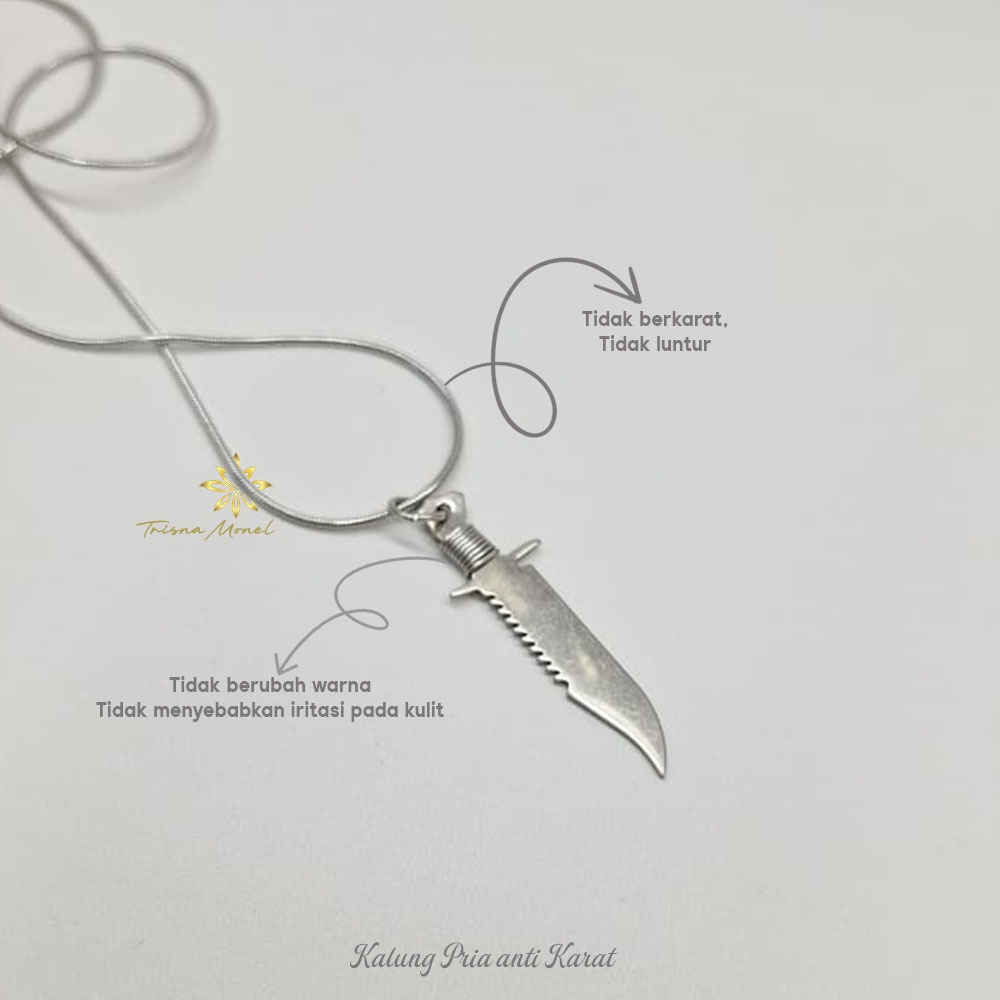 KALUNG PRIA LIONTIN BAHAN MONEL MOTIF PISAU LILIT ANTI KARAT