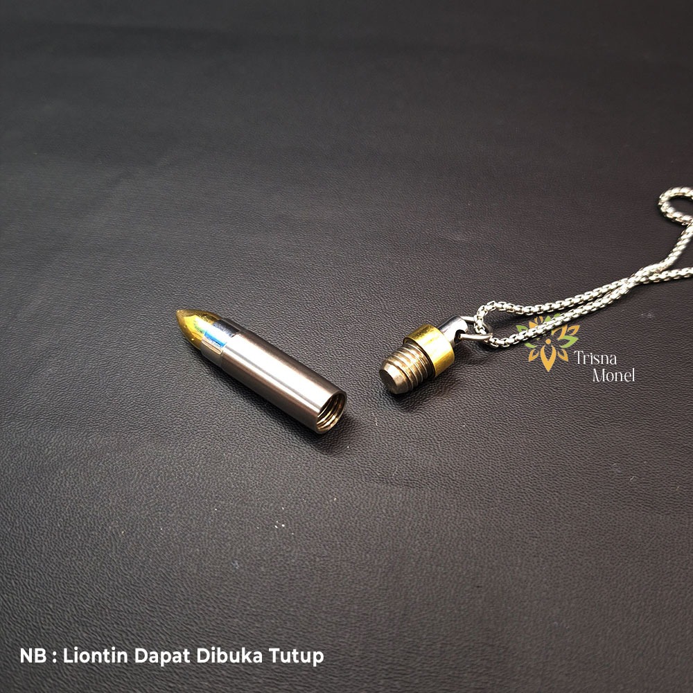 Produk liontin tersebut dibuat dari bahan monel asli anti karat yang dikombinasi dengan kalung titanium motif rolo anti karat.