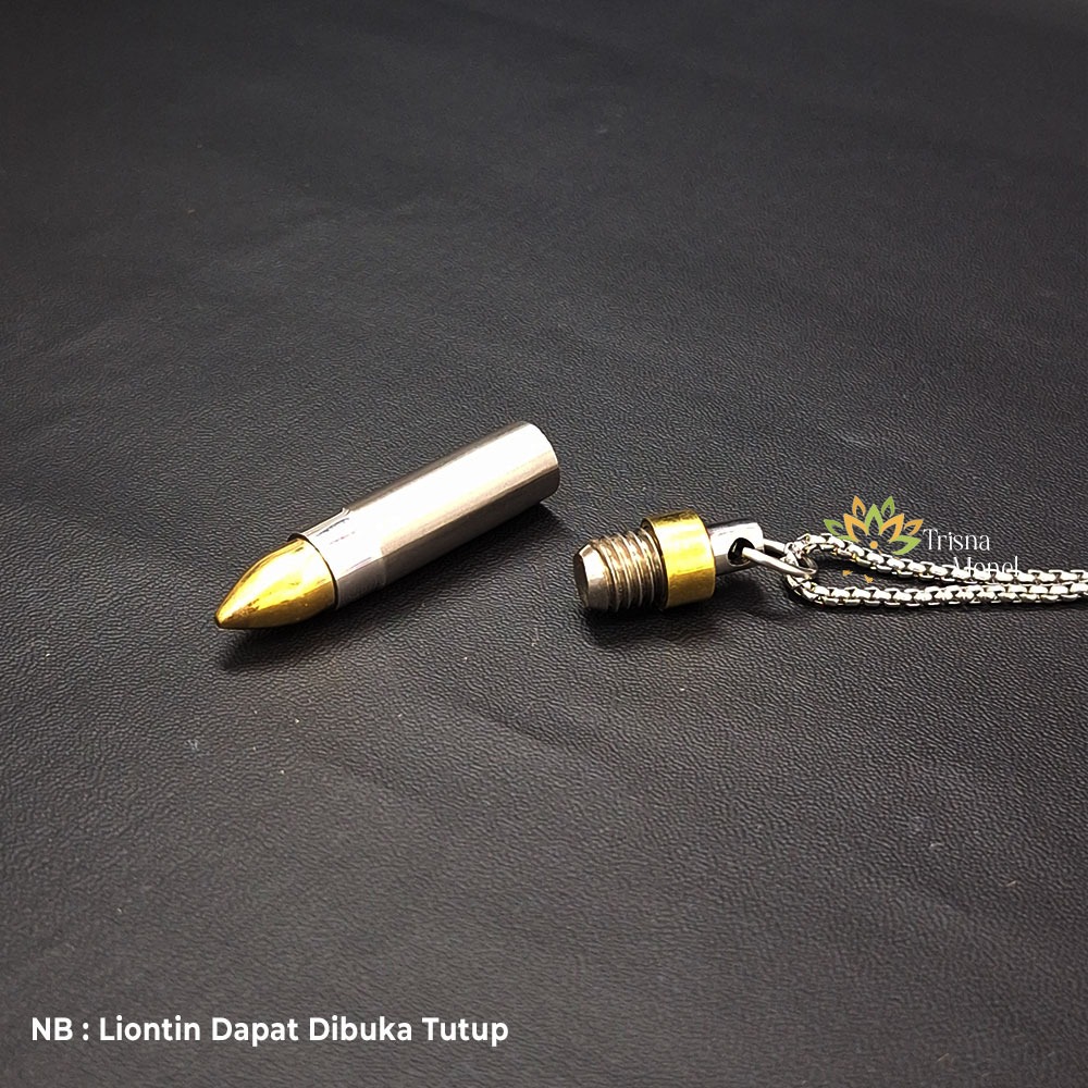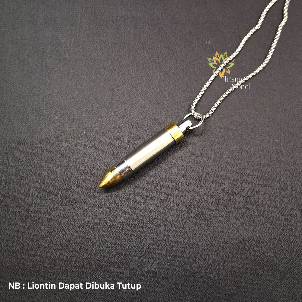 KALUNG PRIA KEKINIAN LIONTIN BUKA TUTUP MOTIF PELURU KOMBINASI KUNING EMAS
