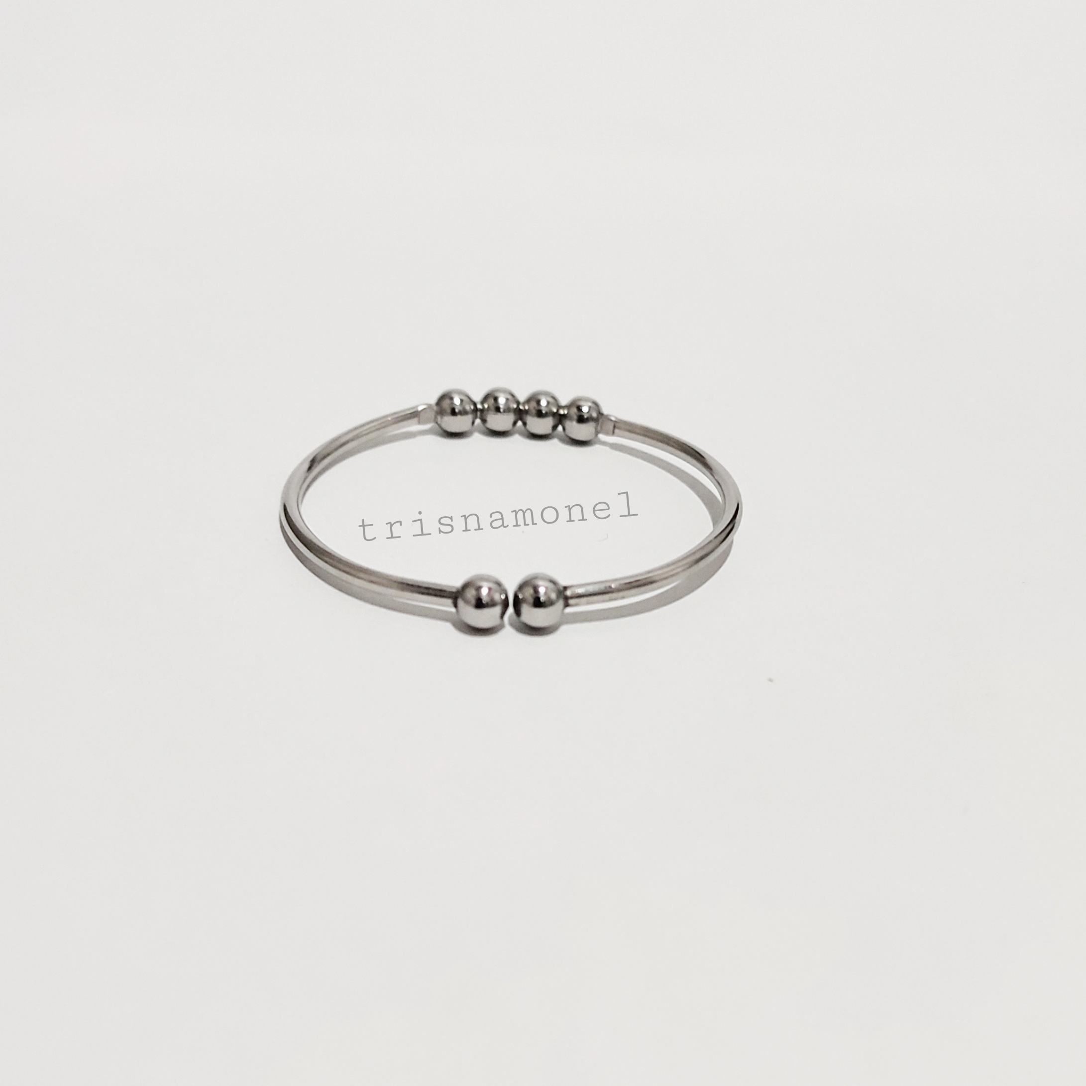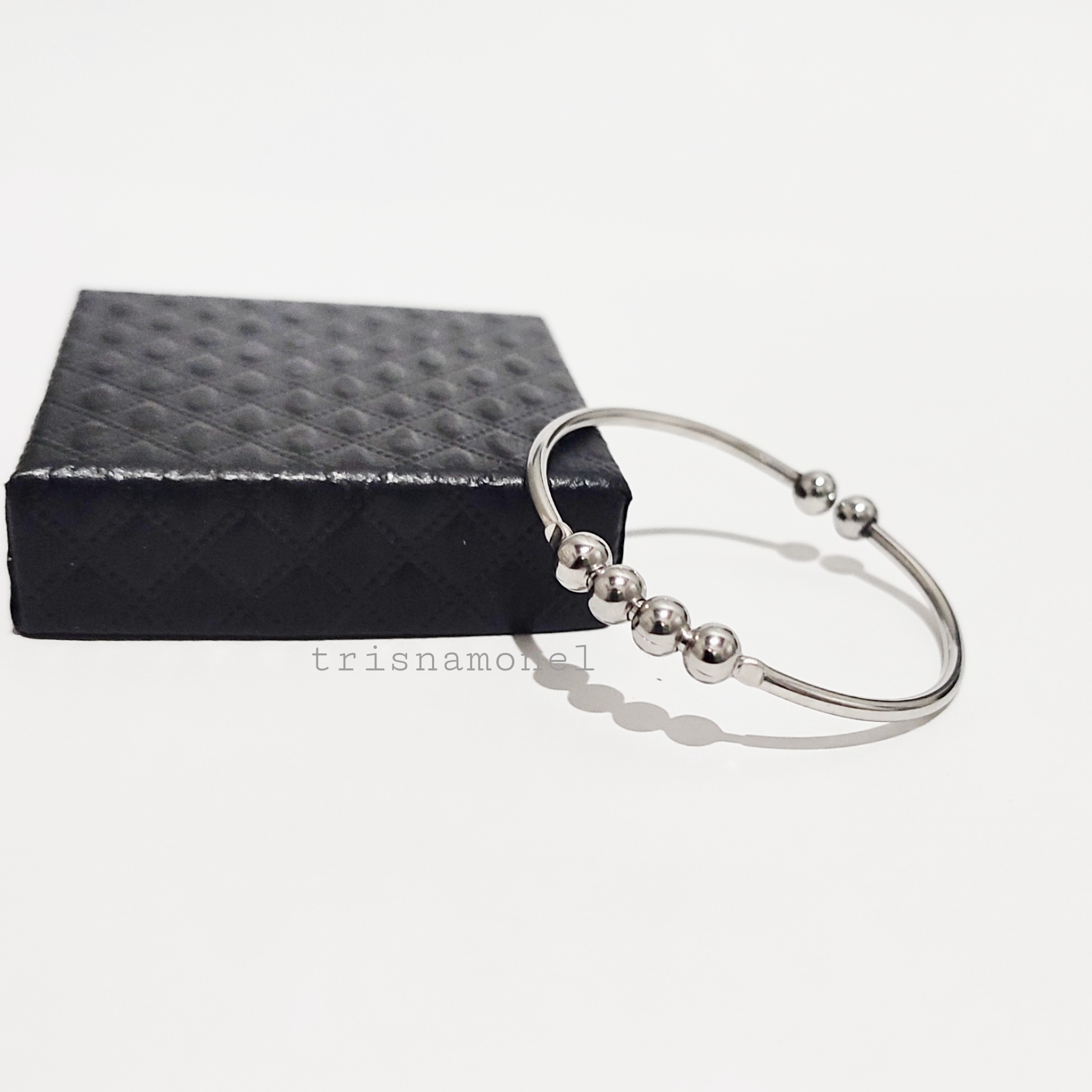 Produk gelang diatas dibuat dari bahan monel asli dengan ketebalan bahan 2 mm yang dikombinasi dengan bola mrica import ukuran 5 mm berkualitas.
