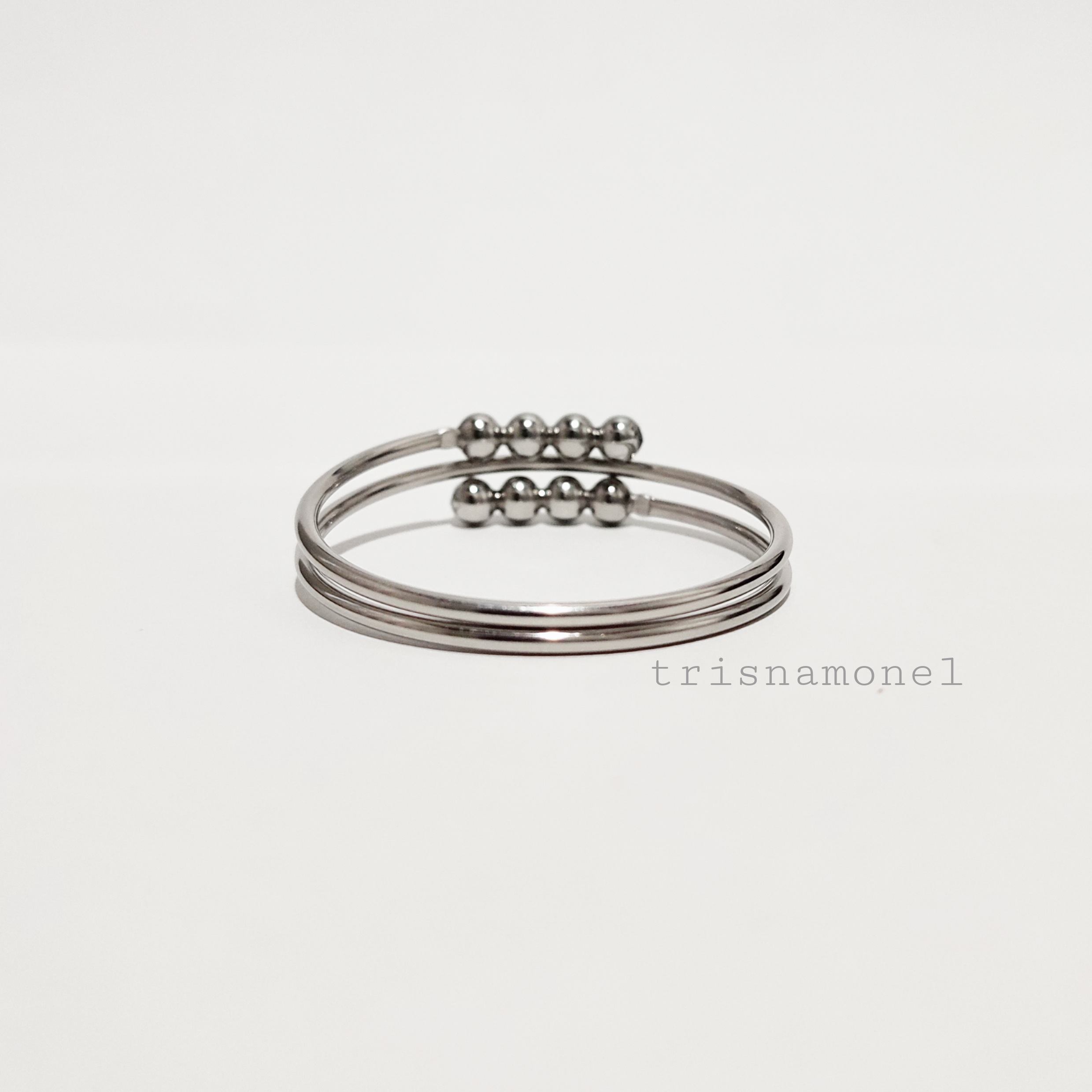 Produk gelang diatas dibuat dari bahan monel asli dengan ketebalan bahan 2 mm yang dikombinasi dengan bola mrica import ukuran 5 mm berkualitas.