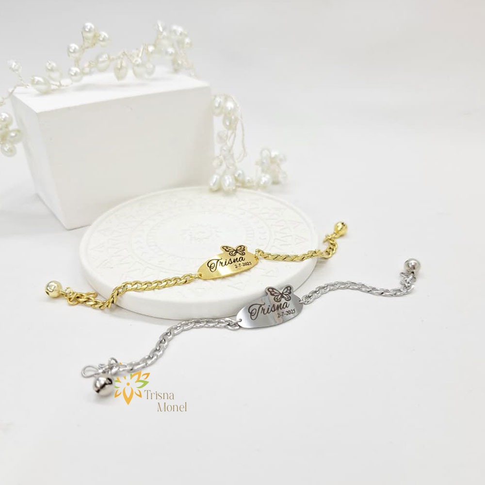 - Gold : Dibuat dari bahan kuningan dengan ketebalan bahan 1 ml yang kami lapisi warna kuning emas/sepuh emas yang kami kombinasi dengan rantai titanium berkualitas.