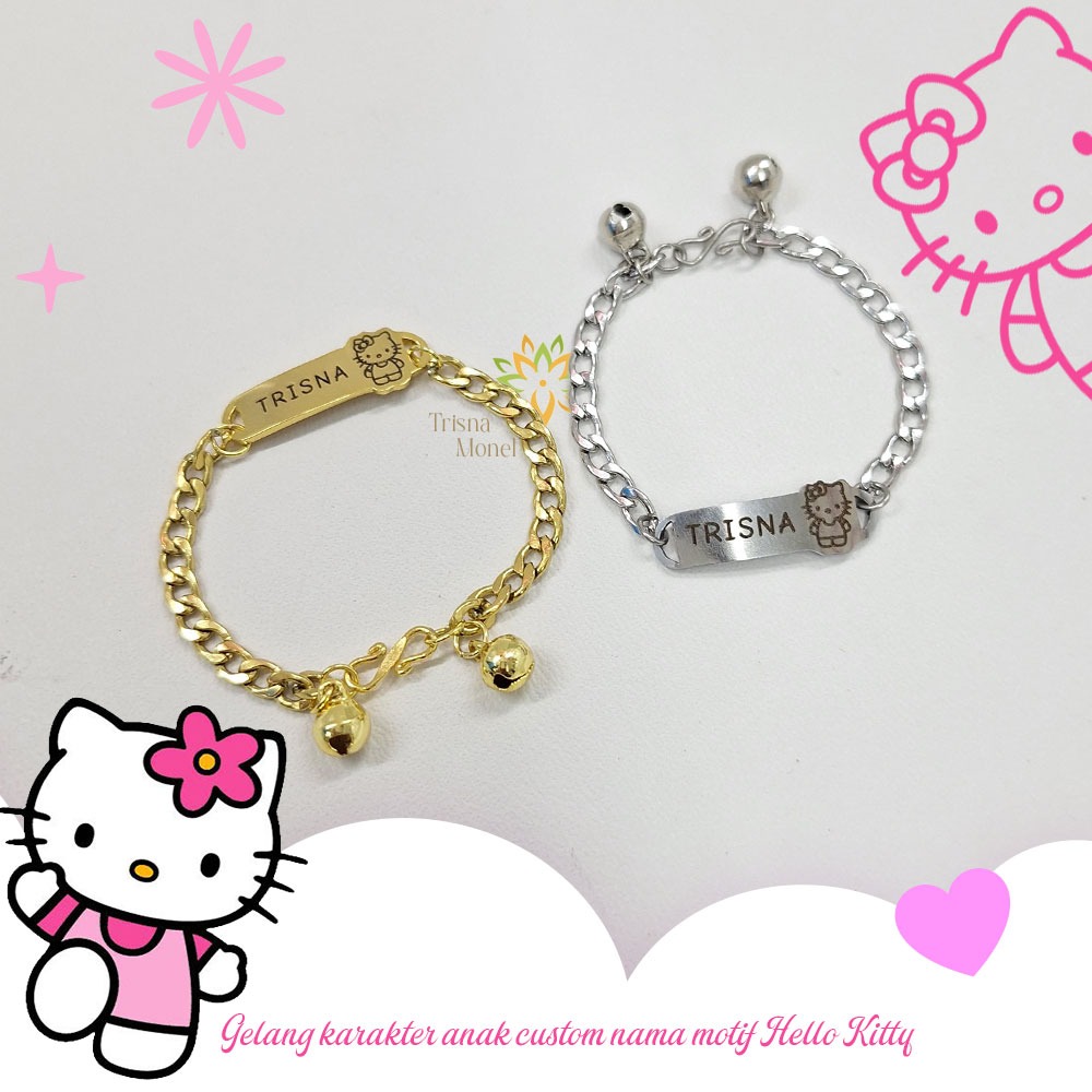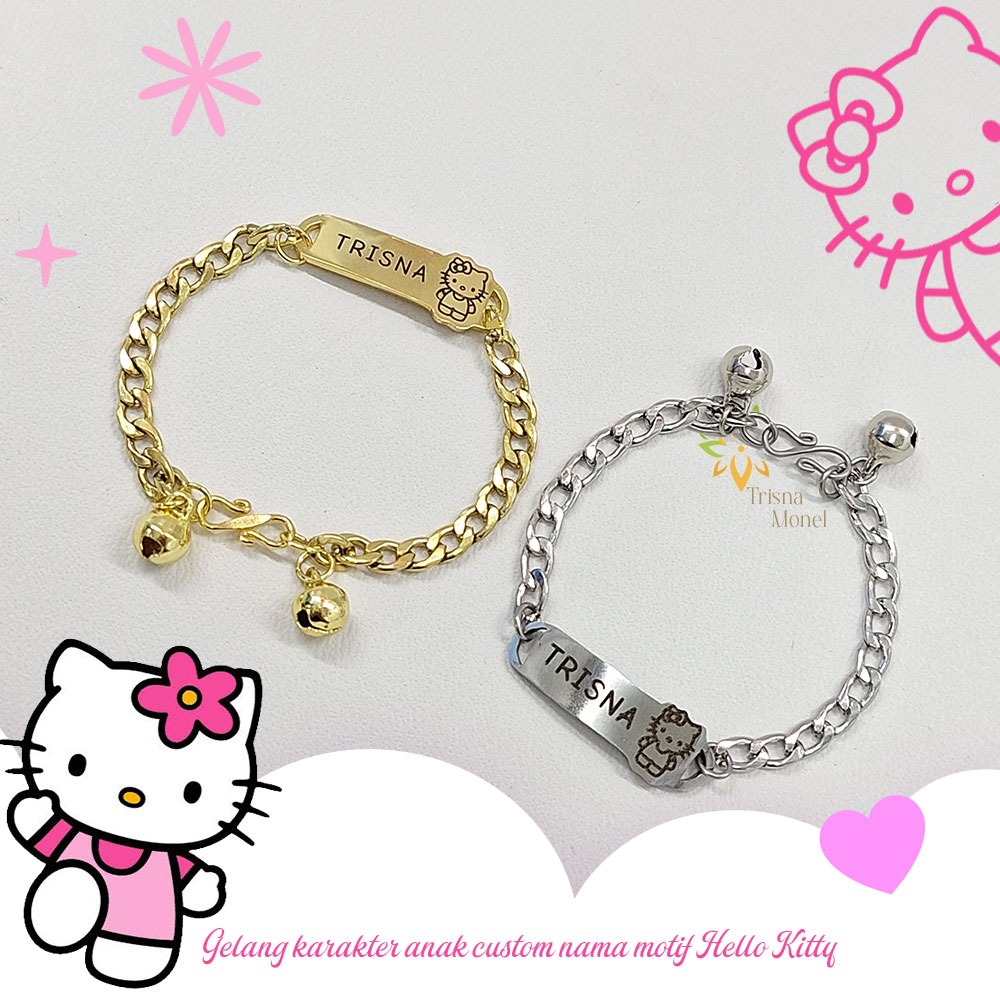Gelang Custom Nama Anak Karakter Motif Hello Kitty Gold Dan Silver Murah