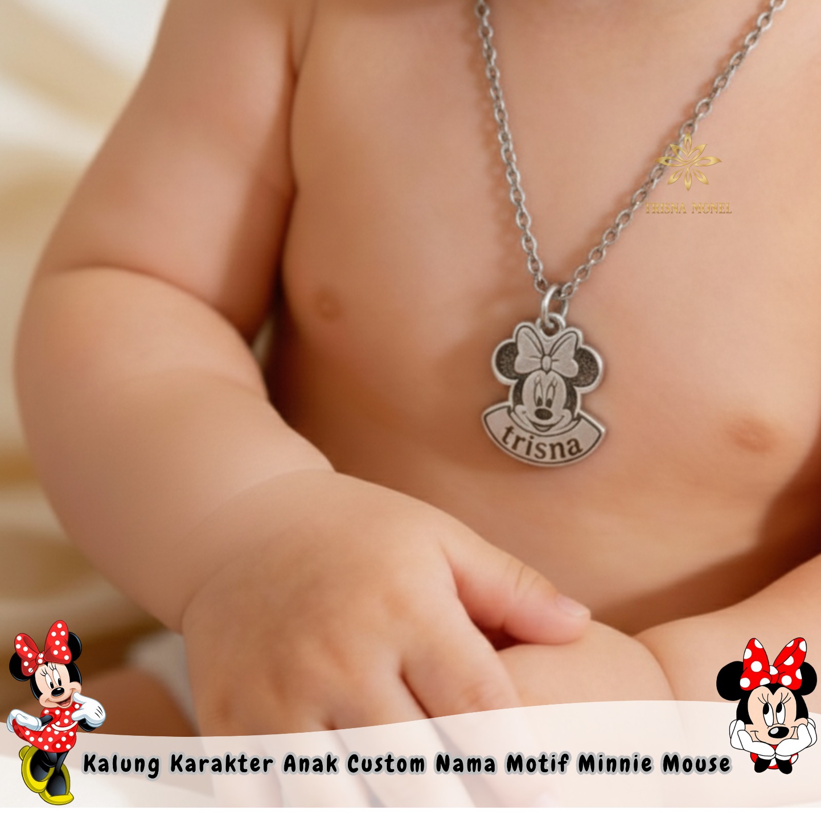 Kalung Karakter Anak Custom Nama Motif Minnie Mouse