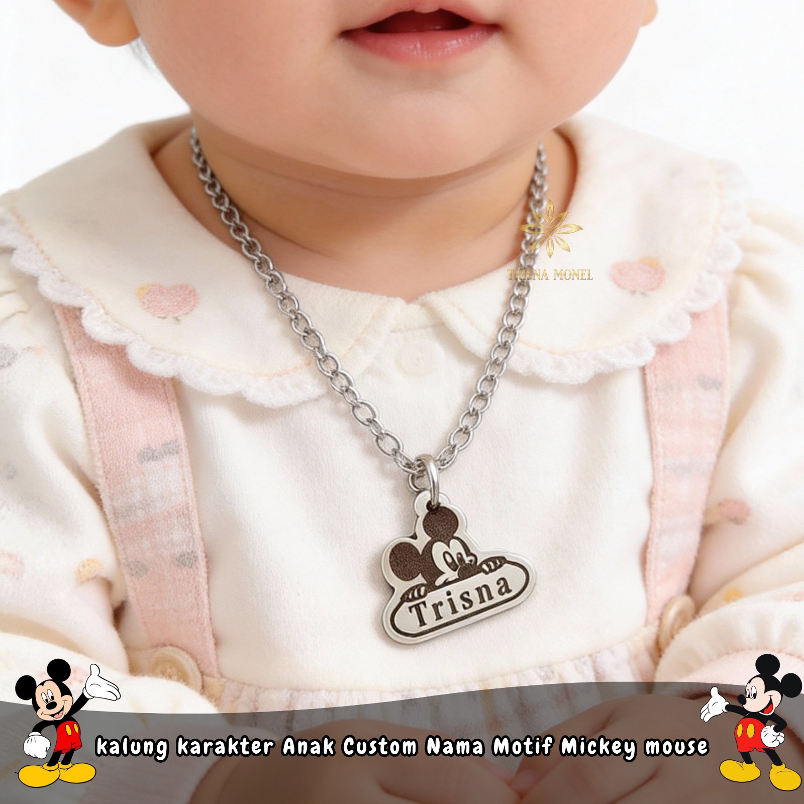 Kalung Karakter Anak Custom Nama Motif Mickey Mouse