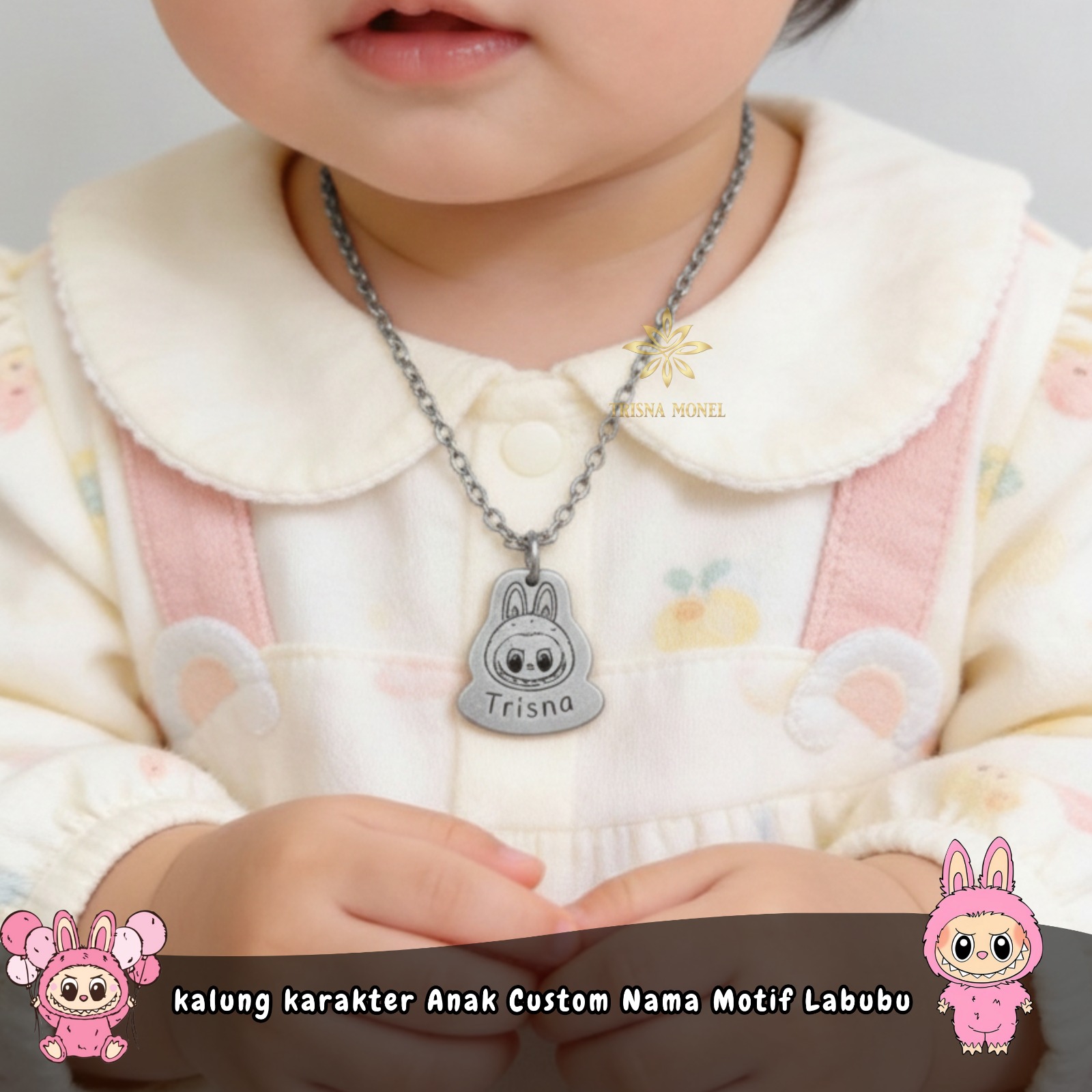 Kalung Karakter Anak Custom Nama Motif Labubu