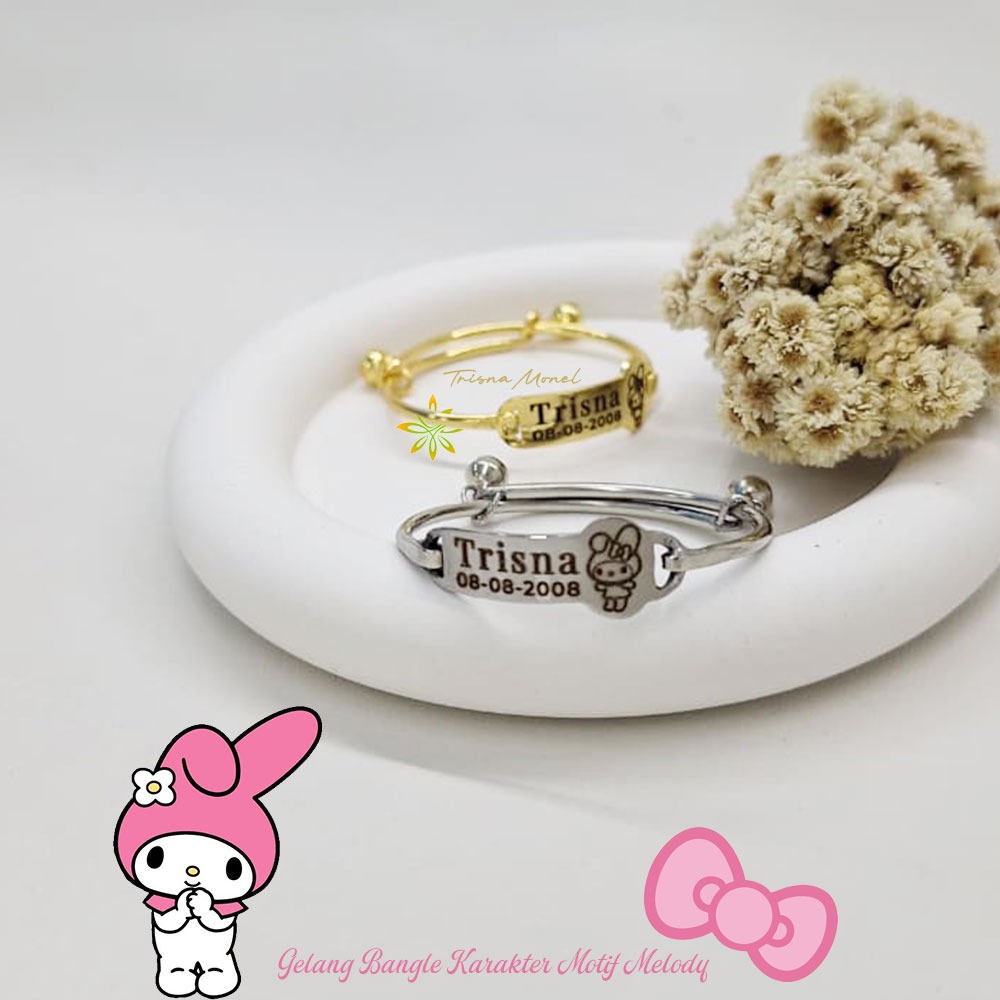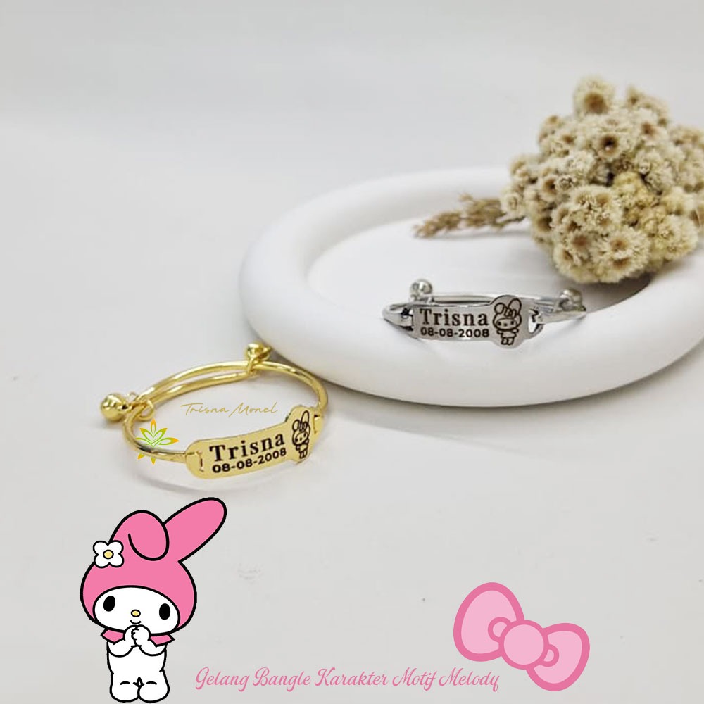 Adjustable free gelang monel !!! gelang karakter ukir nama size anak sampai dewasa motif Melody