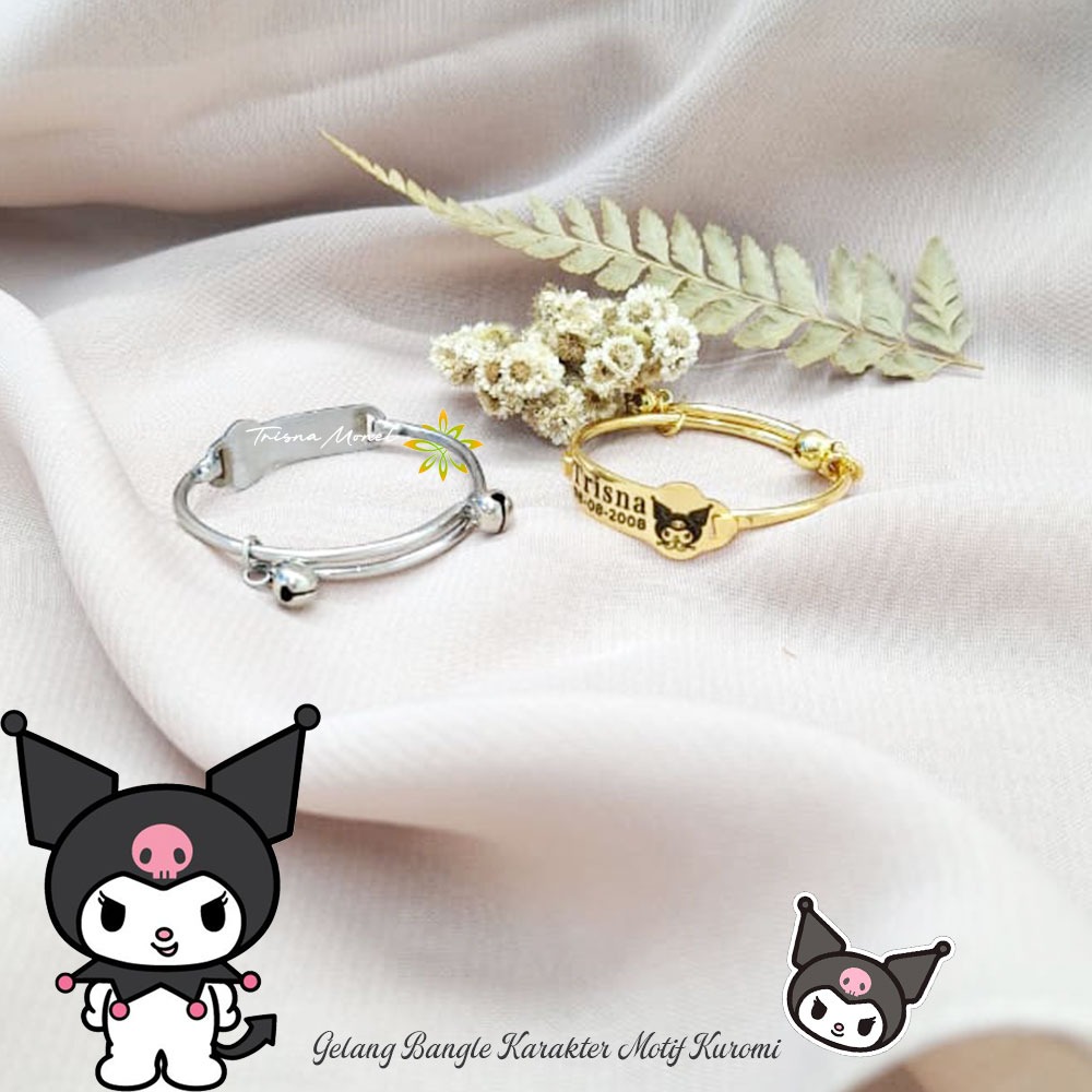 Adjustable free gelang monel !!! gelang karakter ukir nama size anak sampai dewasa motif kuromi