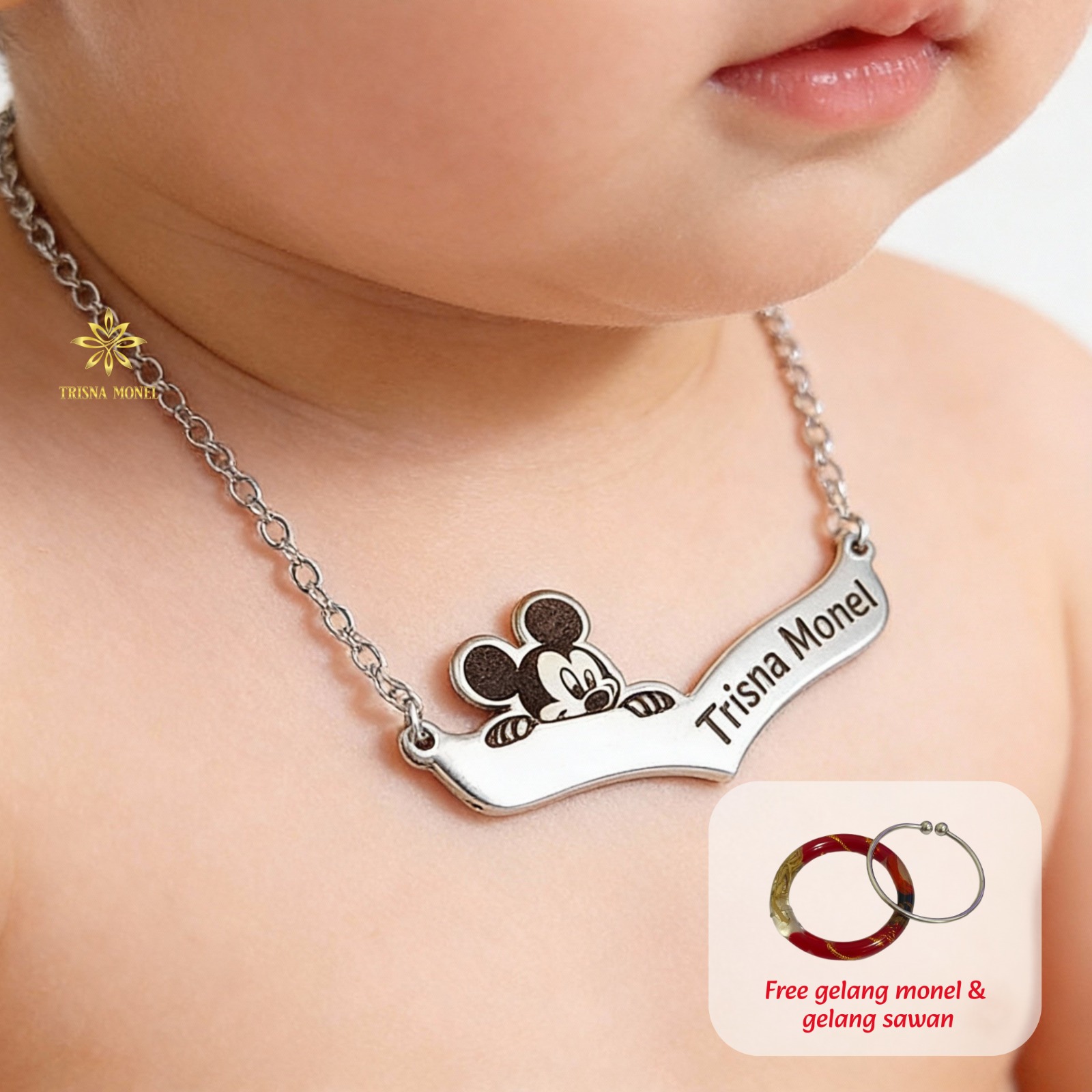GRATIS GELANG MONEL & GELANG SAWAN !!! Kalung custom nama gold dan silver motif Mickey mouse 01
