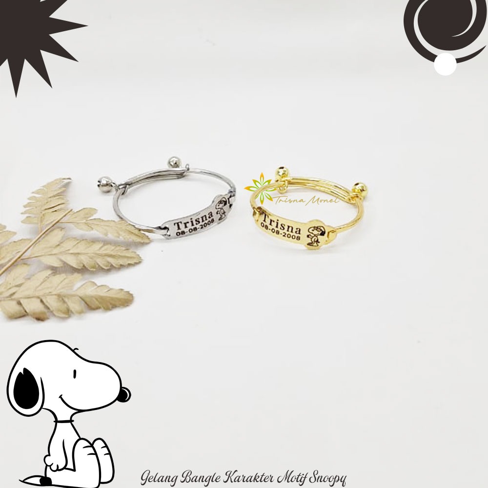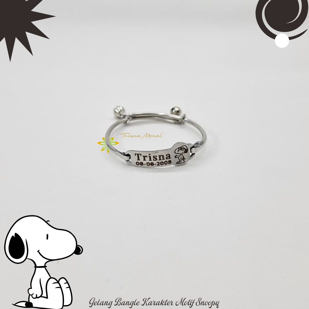 Adjustable free gelang monel !!! gelang karakter ukir nama size anak sampai dewasa motif Snoopy