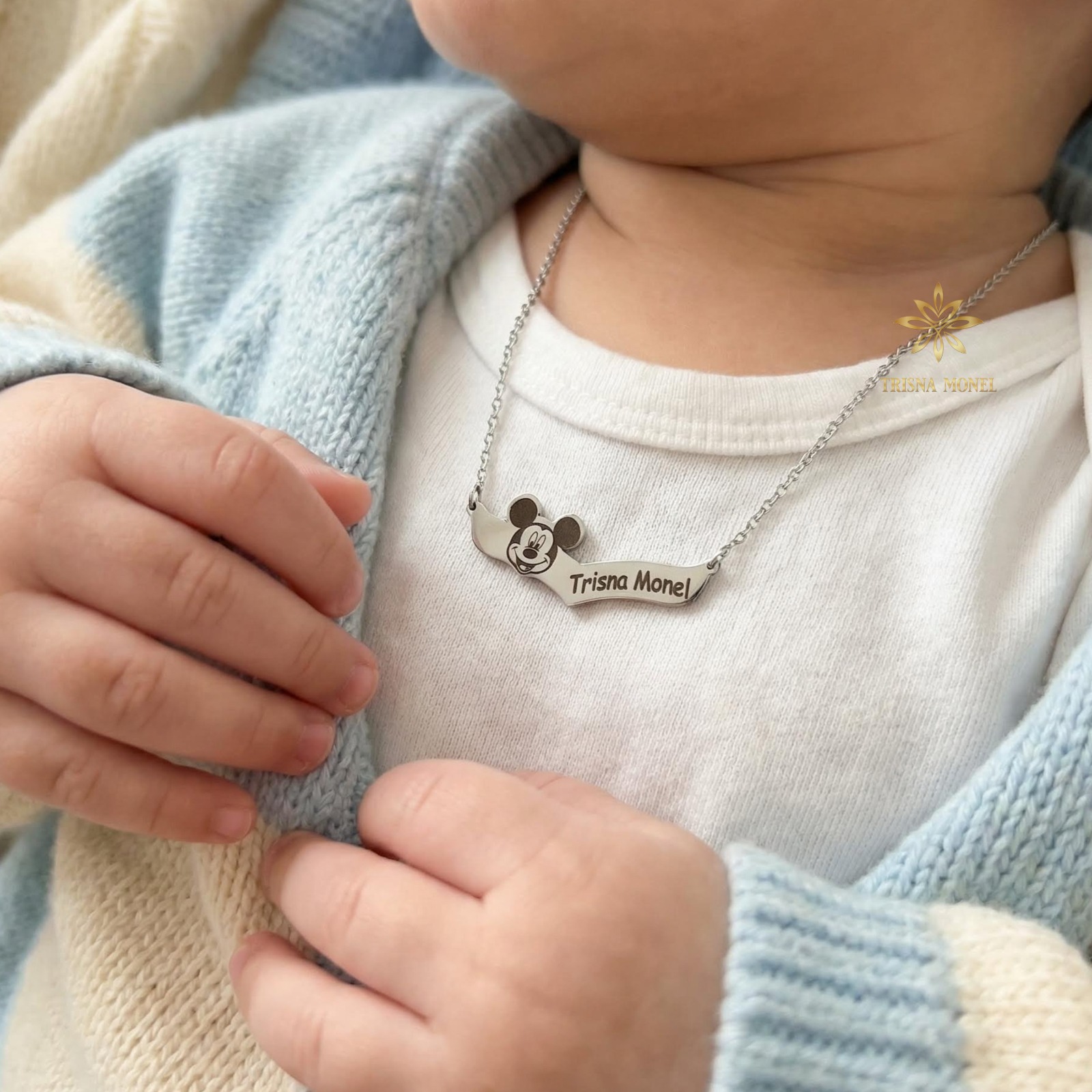GRATIS GELANG MONEL & GELANG SAWAN !!! Kalung custom nama gold dan silver motif Mickey mouse 02