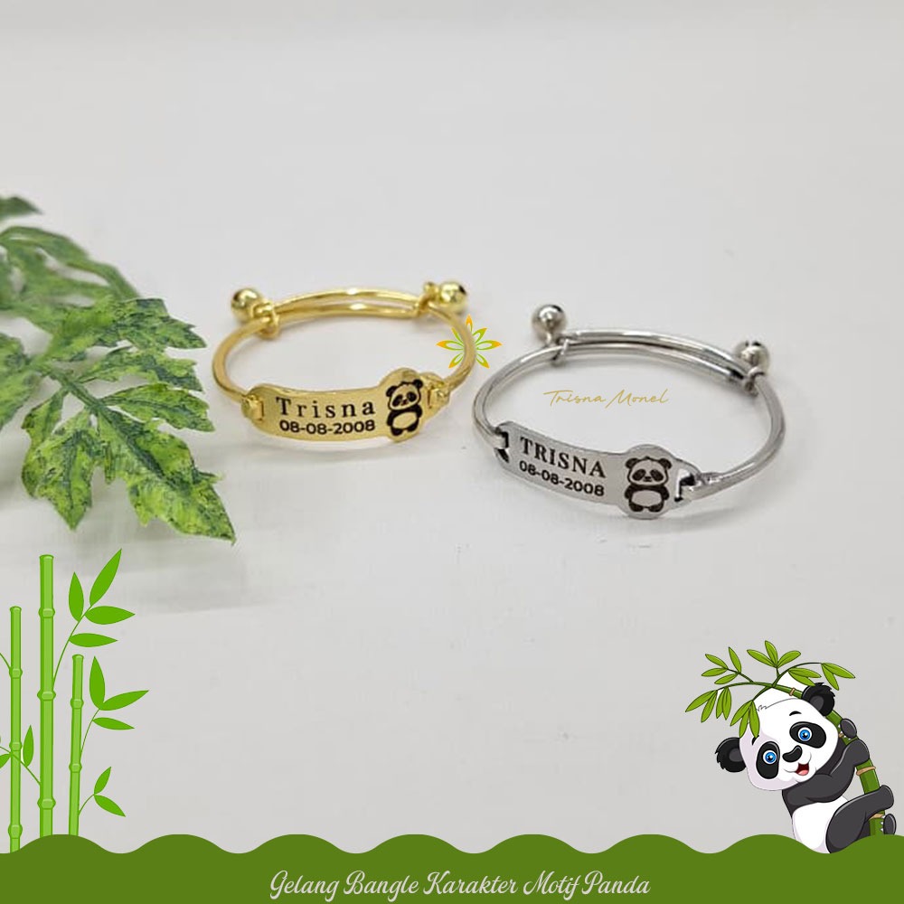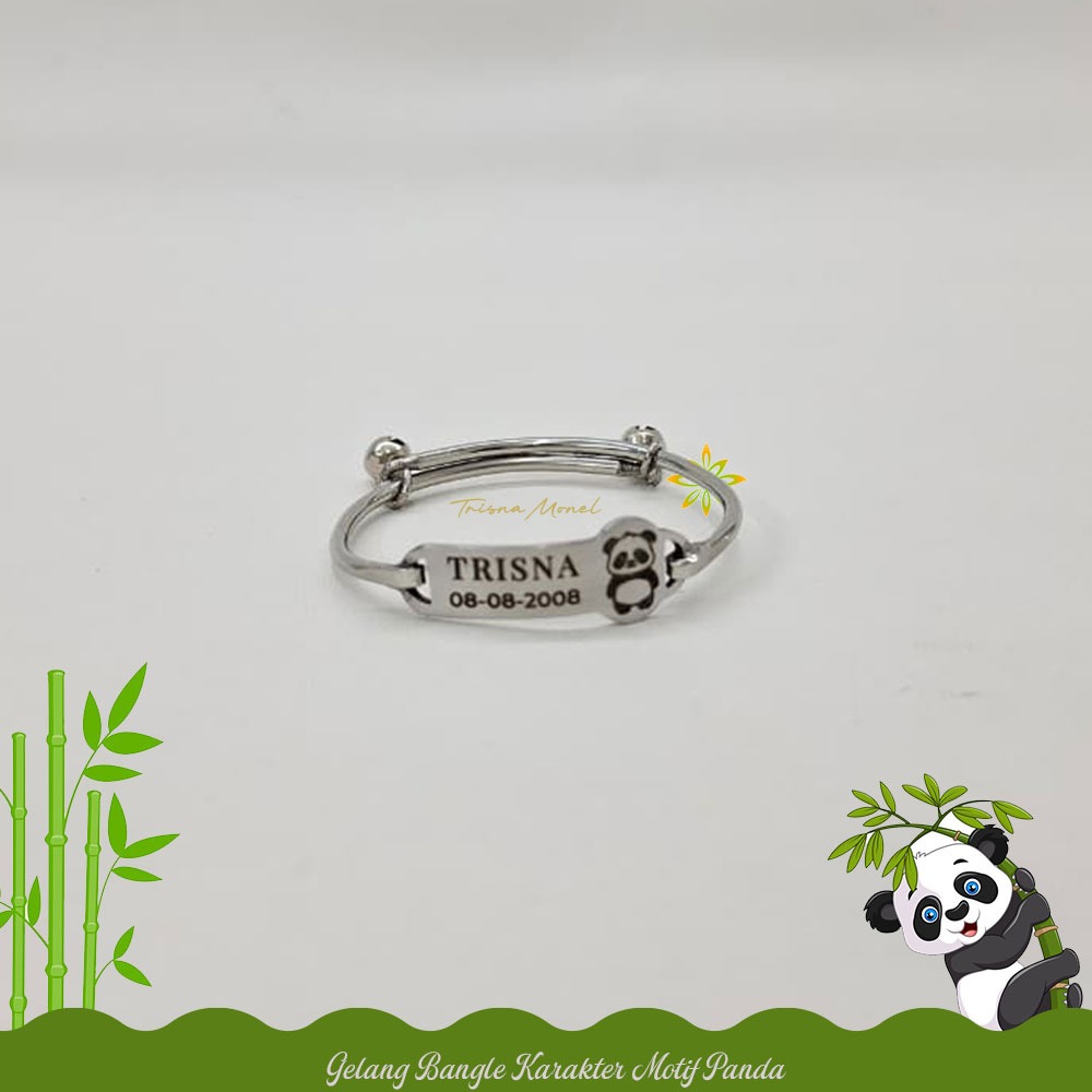 Adjustable free gelang monel !!! gelang karakter ukir nama size anak sampai dewasa motif Panda