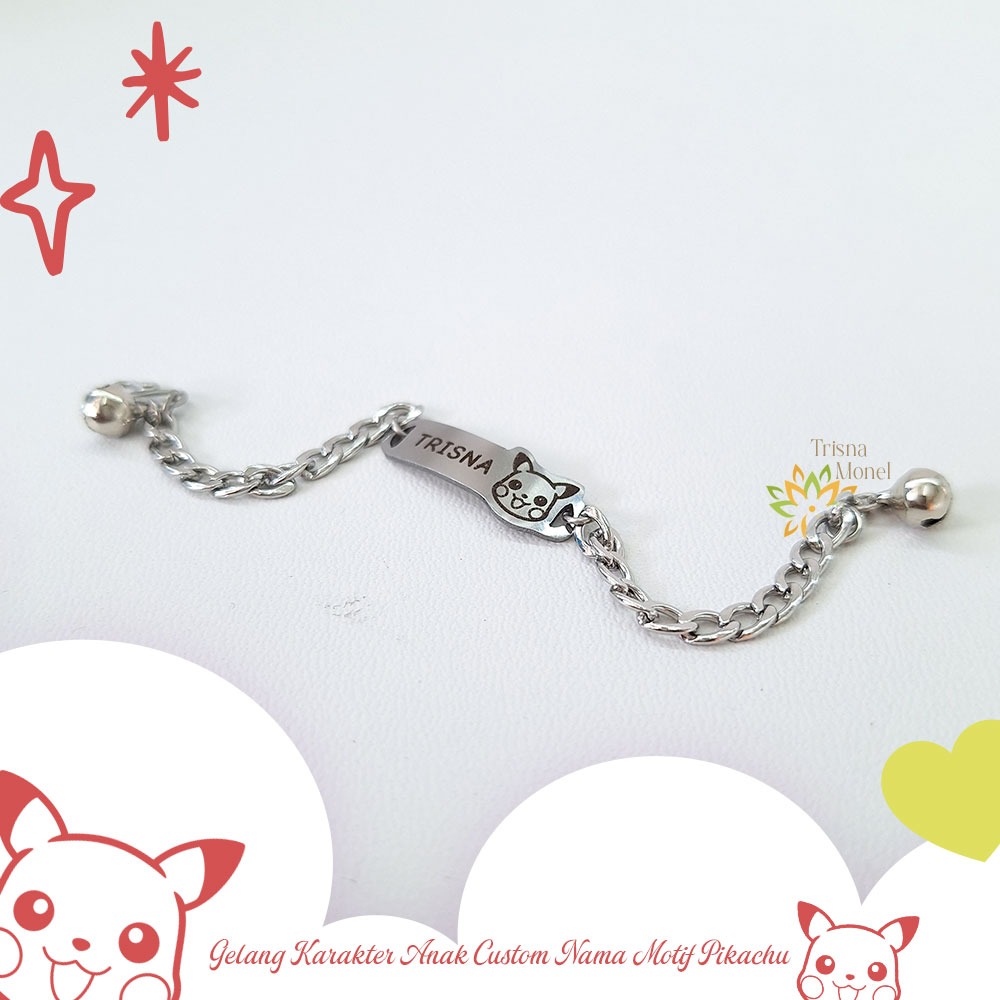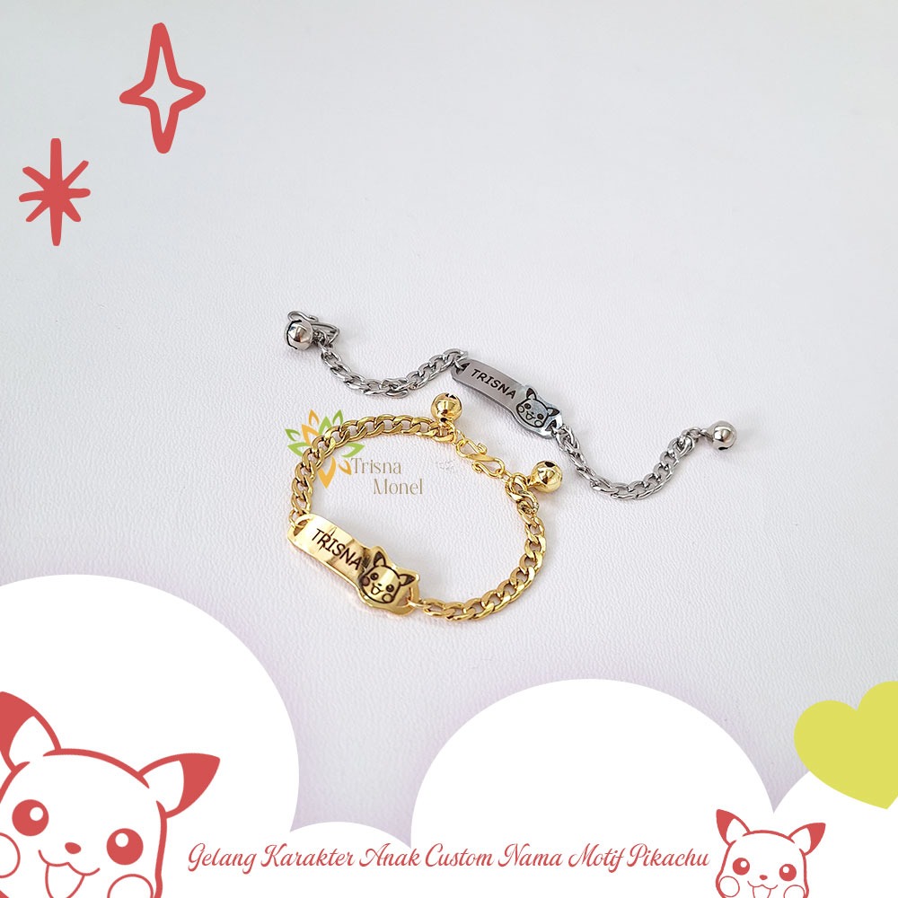 GELANG CUSTOM NAMA ANAK KARAKTER MOTIF PIKACHU GOLD DAN SILVER MURAH