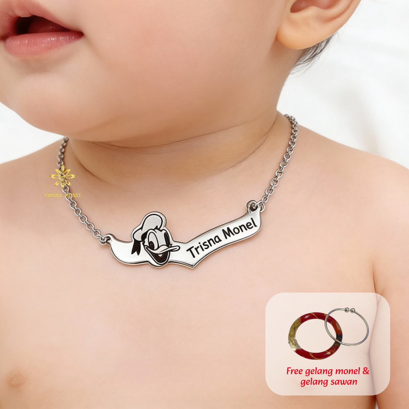 GRATIS GELANG MONEL & GELANG SAWAN !!! Kalung custom nama gold dan silver motif Donald Duck