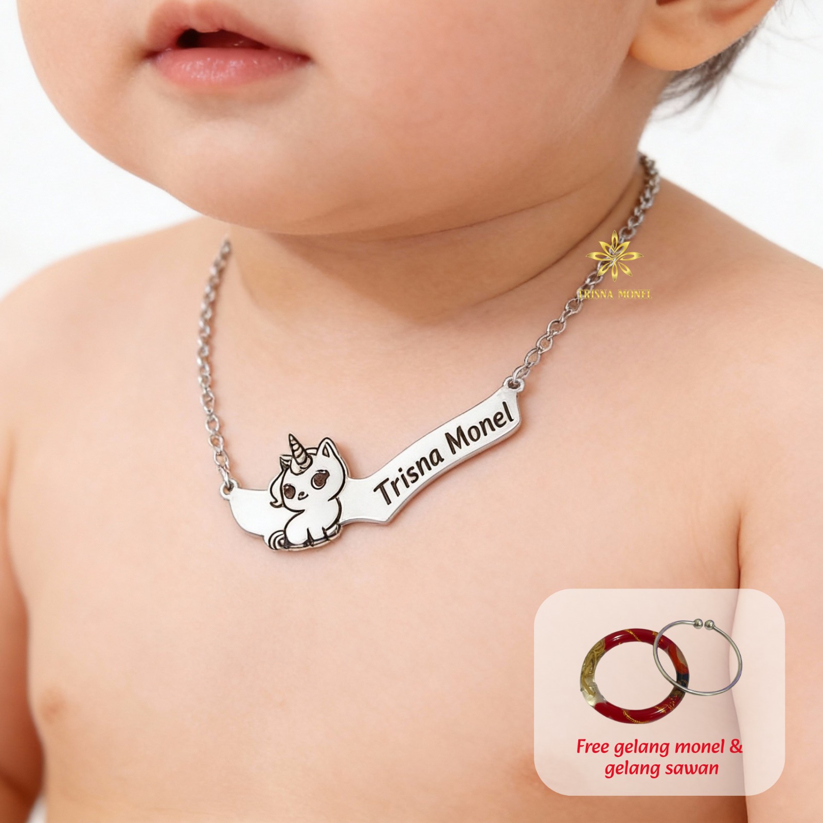 - GOLD : Dibuat dari bahan kuningan dengan ketebalan 1 ml yang dilapisi warna emas/sepuh emas dan kami kombinasi dengan rantai nori titanium ketebalan 0,5 ml.