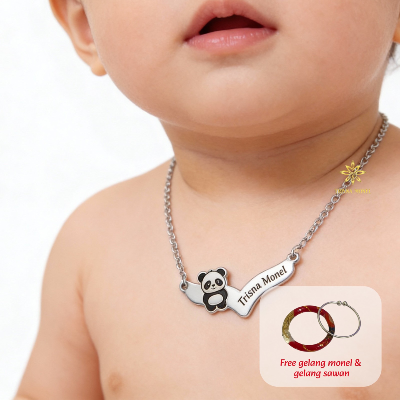 GRATIS GELANG MONEL & GELANG SAWAN !!! Kalung custom nama gold dan silver motif Panda