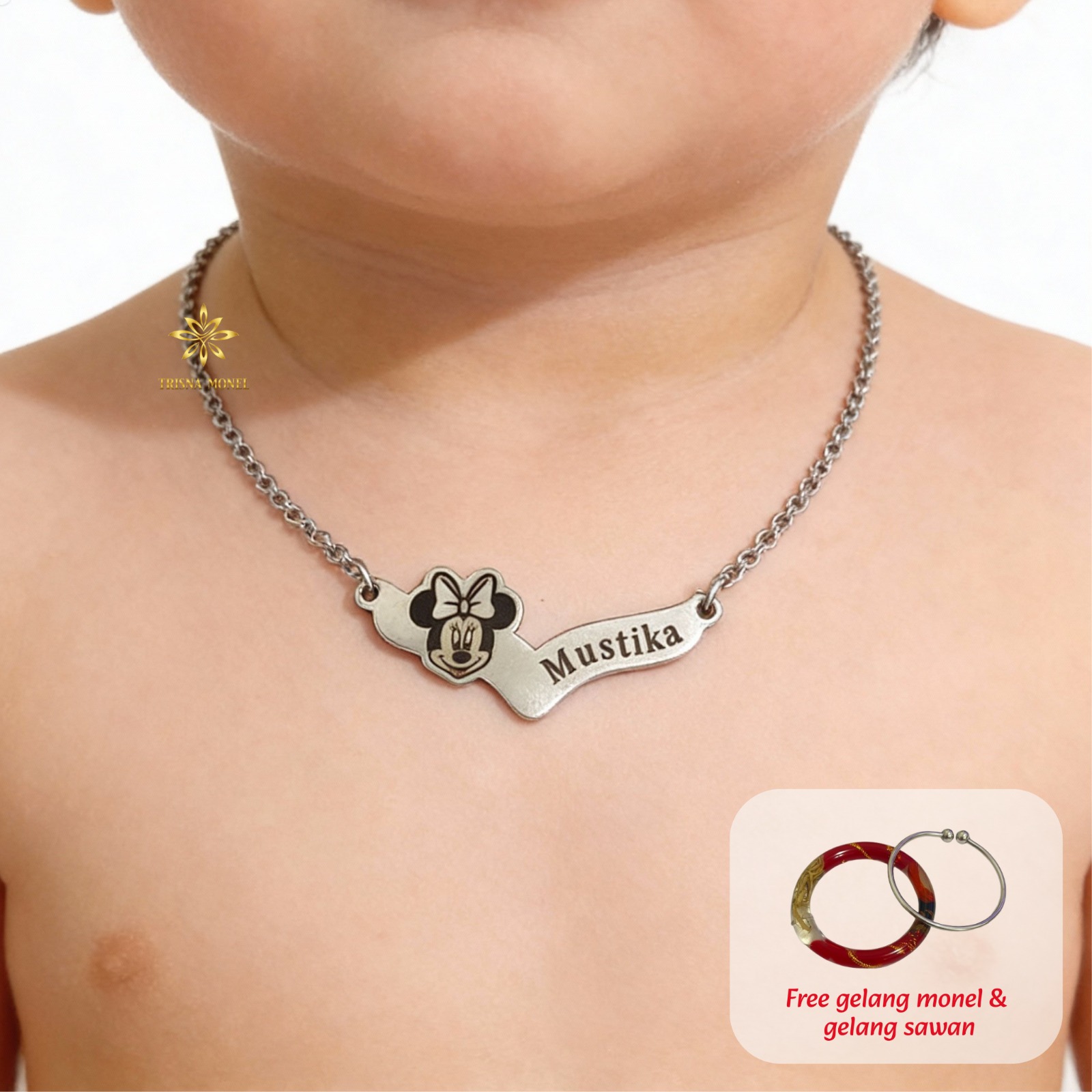 GRATIS GELANG MONEL & GELANG SAWAN !!! Kalung custom nama gold dan silver motif Minnie mouse