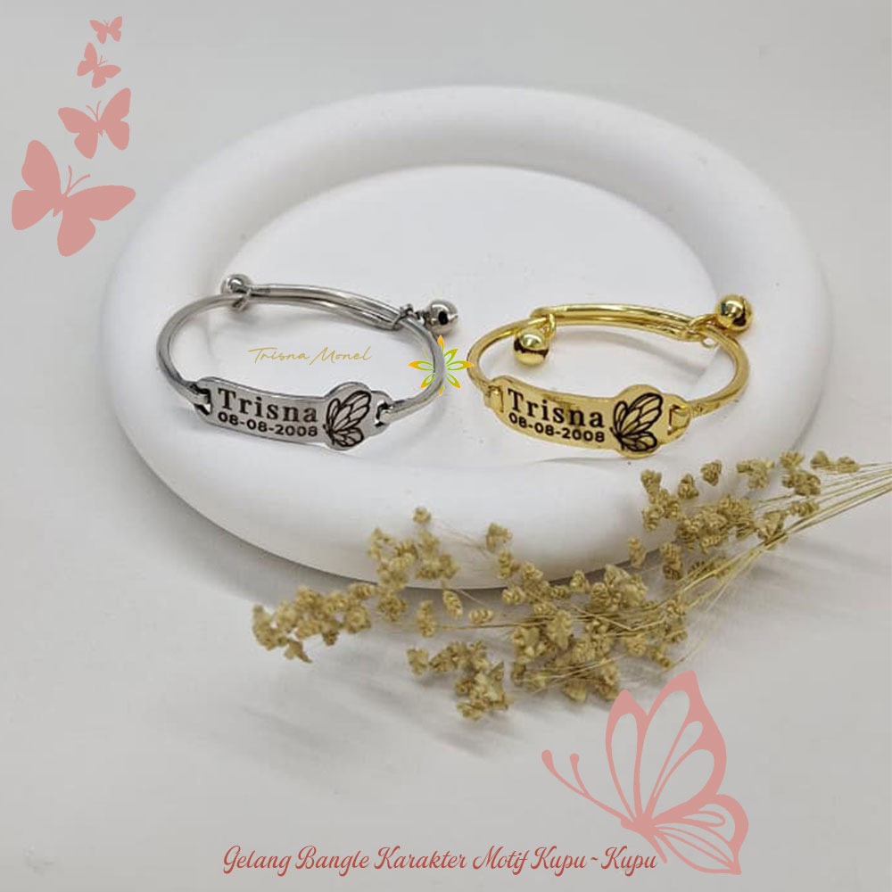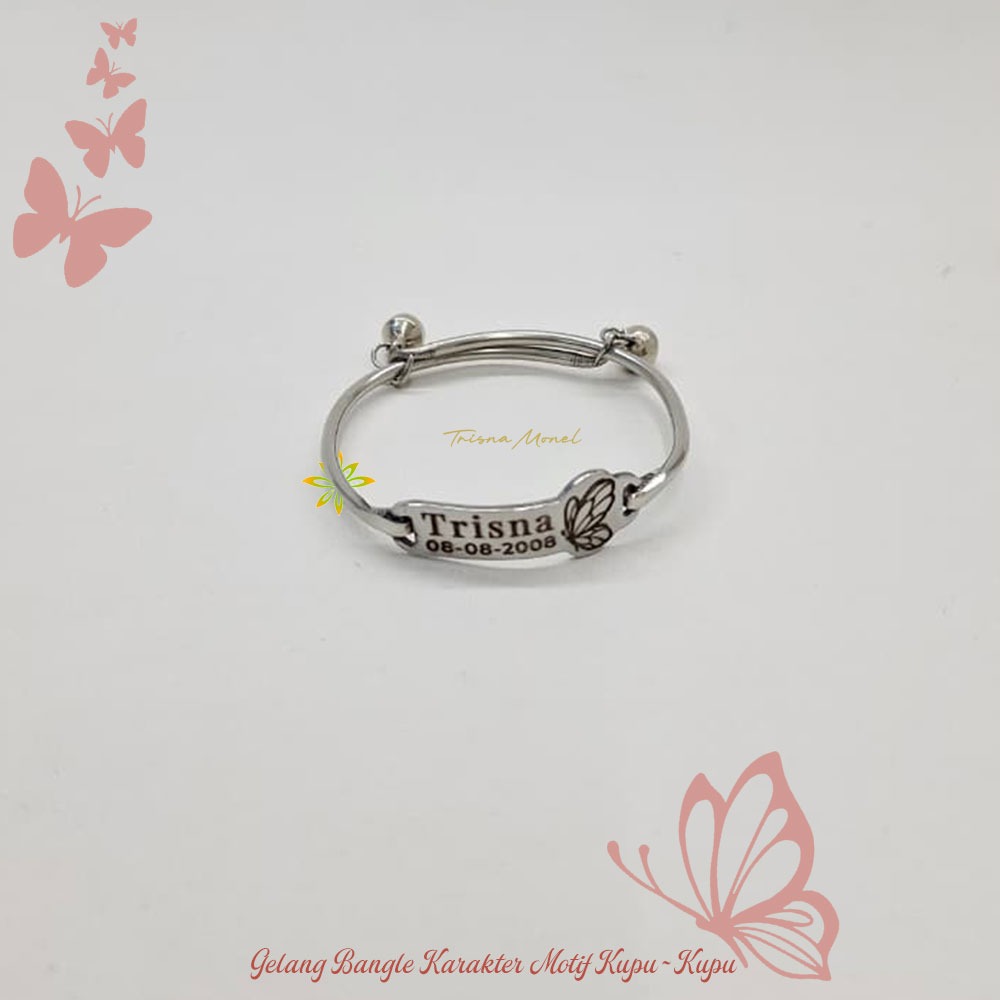 Adjustable free gelang monel !!! gelang karakter ukir nama size anak sampai dewasa motif Kupu - Kupu