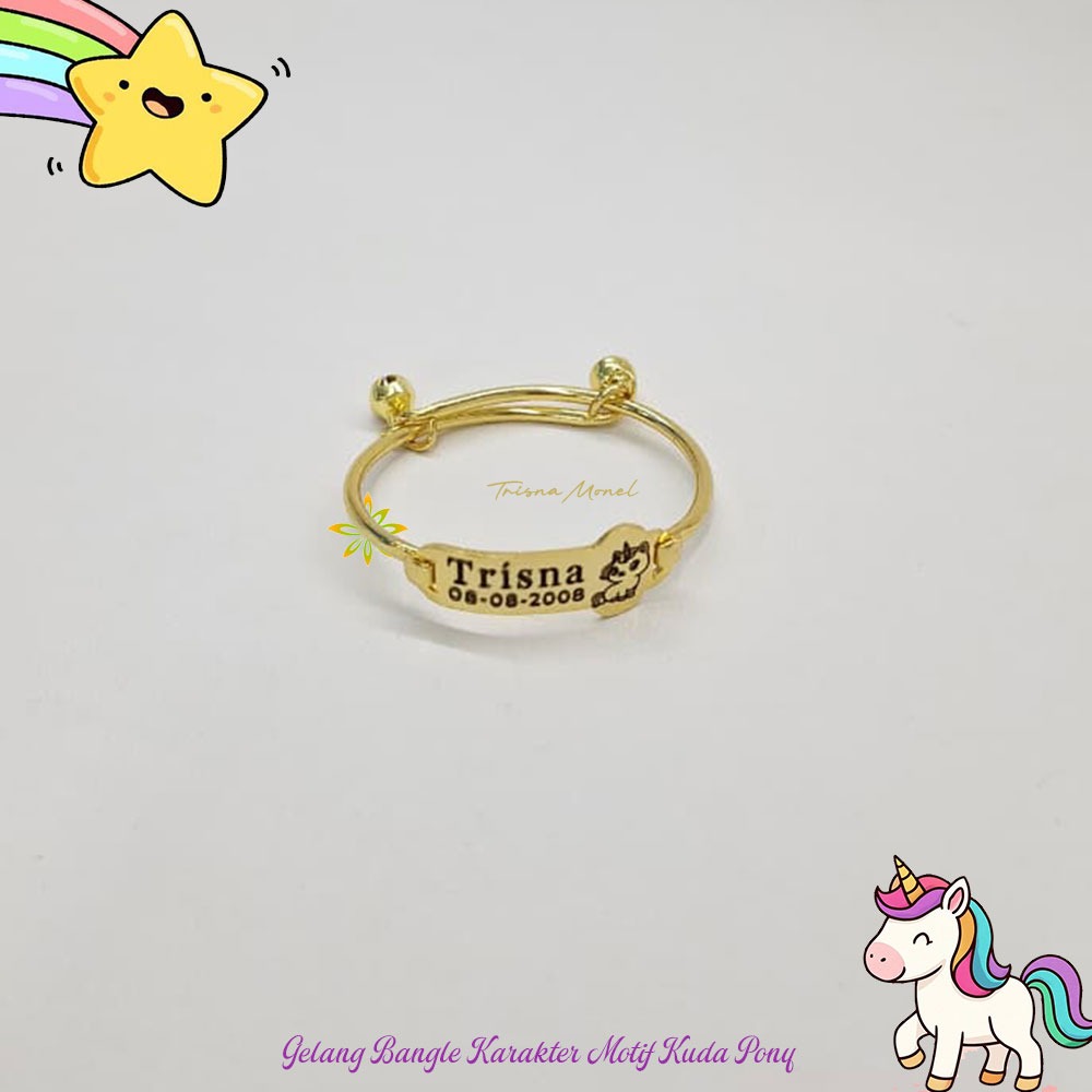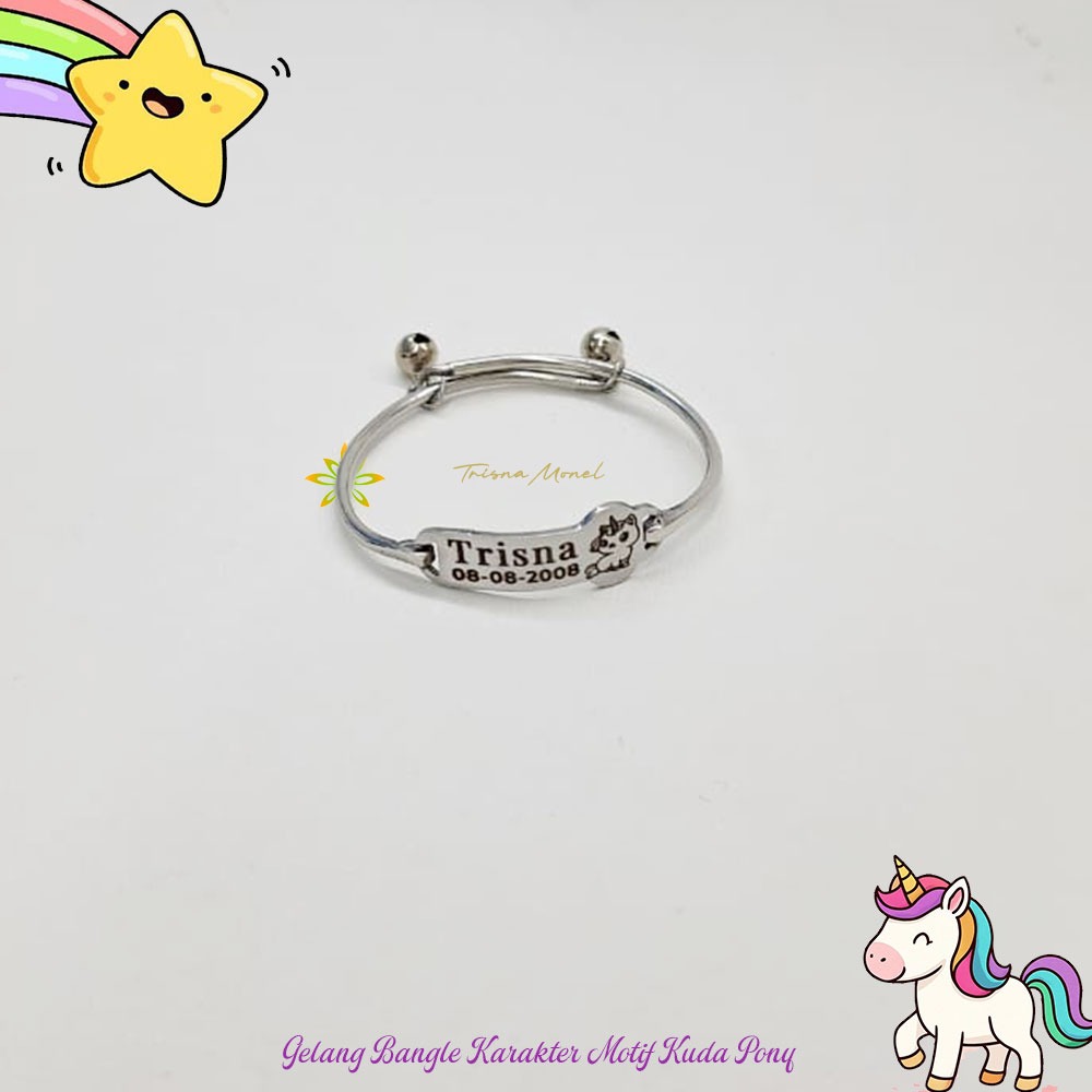 Adjustable free gelang monel !!! gelang karakter ukir nama size anak sampai dewasa motif Kuda Pony