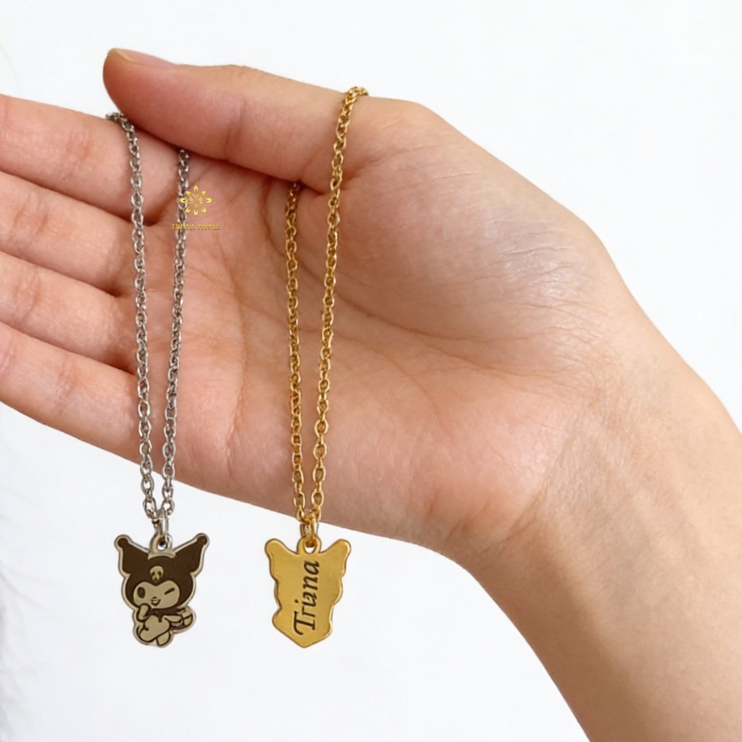 Kalung Liontin Custom Nama Premium Size Bayi Sampai Dewasa Motif Kuromi