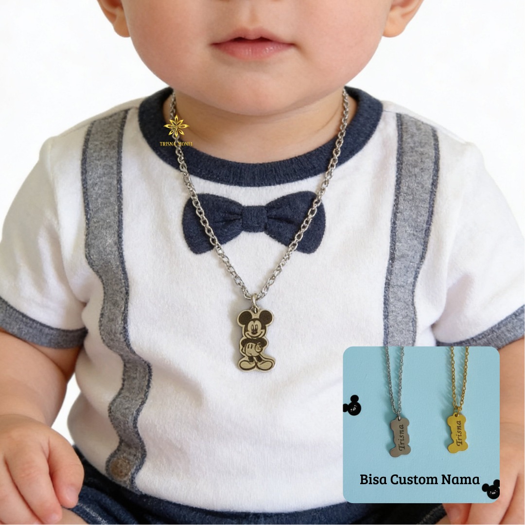 Kalung Liontin Custom Nama Premium Size Bayi Sampai Dewasa Motif Mickey Mouse