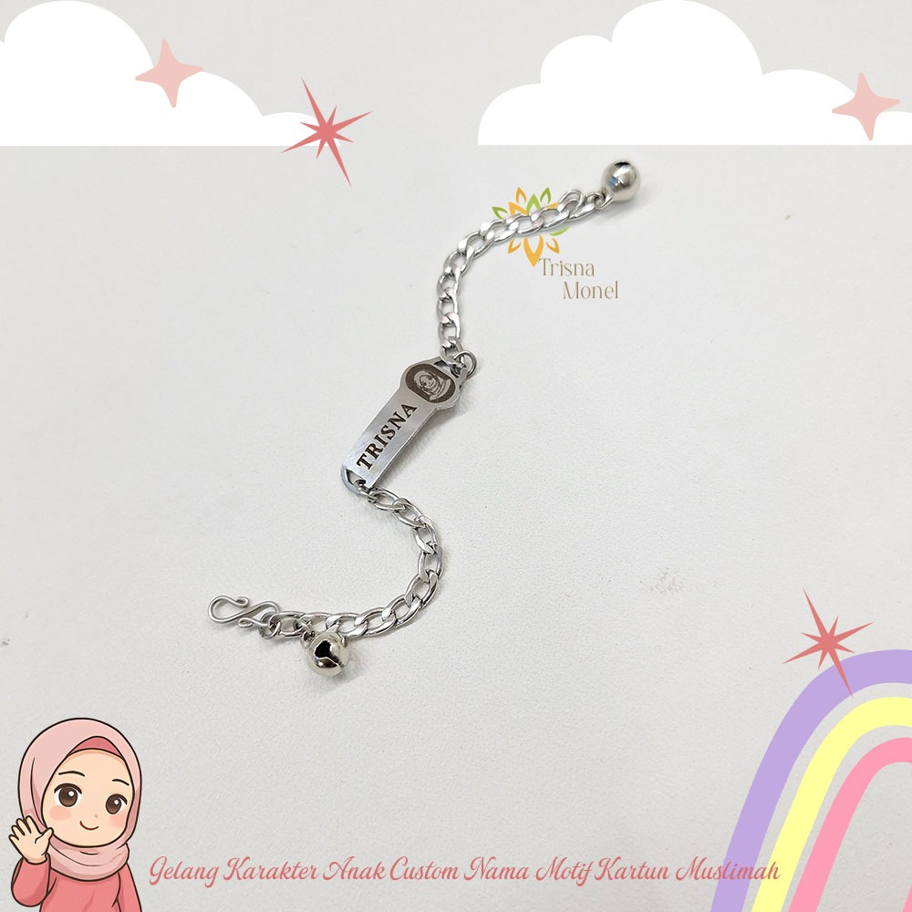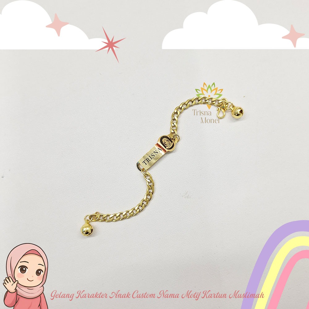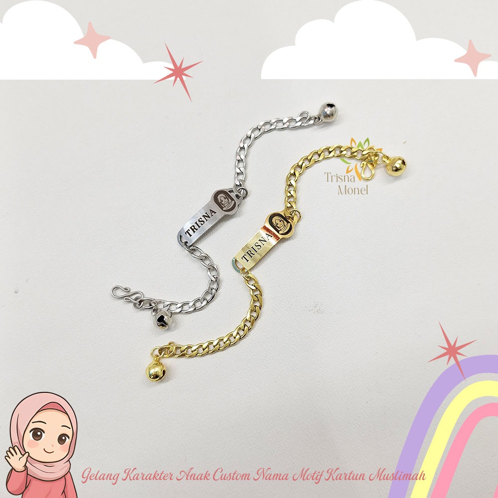 GELANG NAMA CUSTOM ANAK MOTIF KARTUN MUSLIMAH GOLD DAN SILVER MURAH