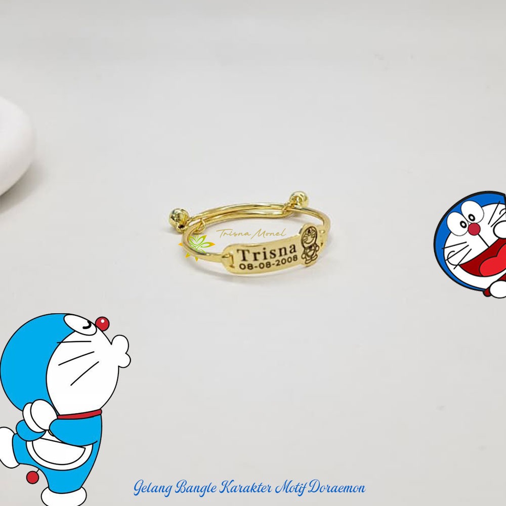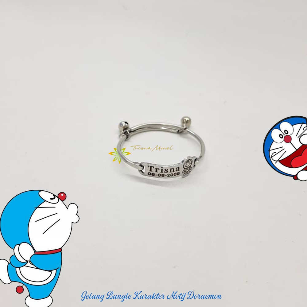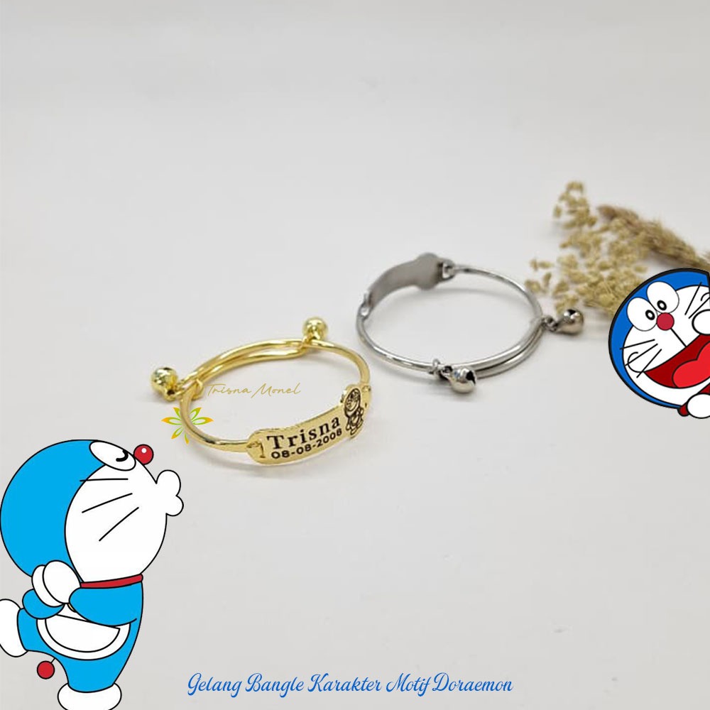 Adjustable free gelang monel !!! gelang karakter ukir nama size anak sampai dewasa motif Doraemon