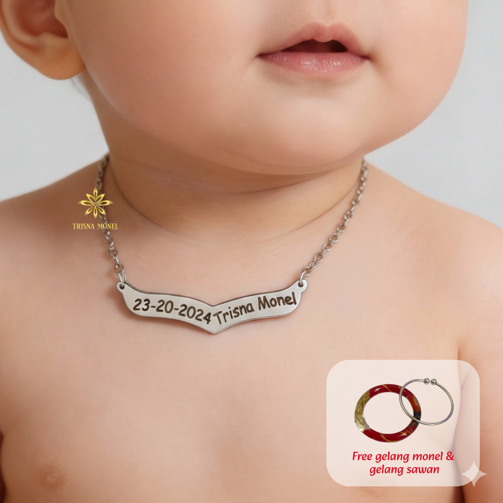 - GOLD : Dibuat dari bahan kuningan dengan ketebalan 1 ml yang dilapisi warna emas/sepuh emas dan kami kombinasi dengan rantai nori titanium ketebalan 0,5 ml.