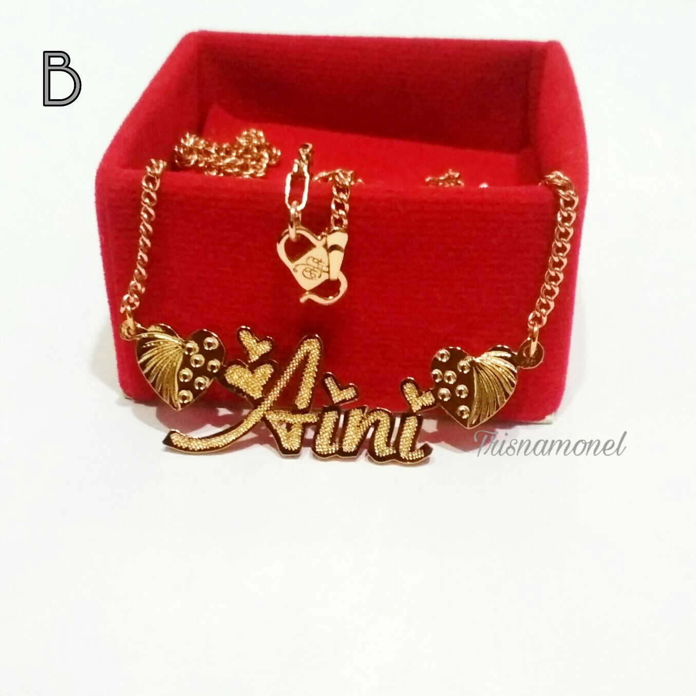 * GOLD : Dibuat dari bahan kuningan dengan ketebalan 1,5 mm yang di lapisi emas/ disepuh emas yang dikombinasi rantai titanium