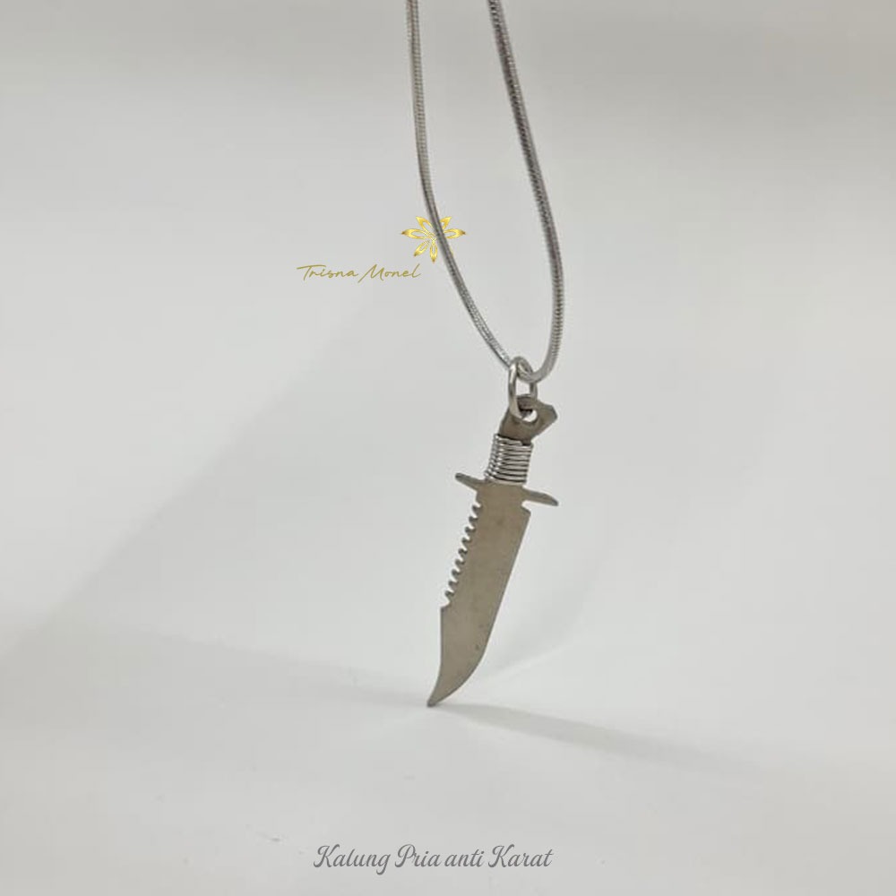 KALUNG PRIA LIONTIN BAHAN MONEL MOTIF PISAU LILIT ANTI KARAT
