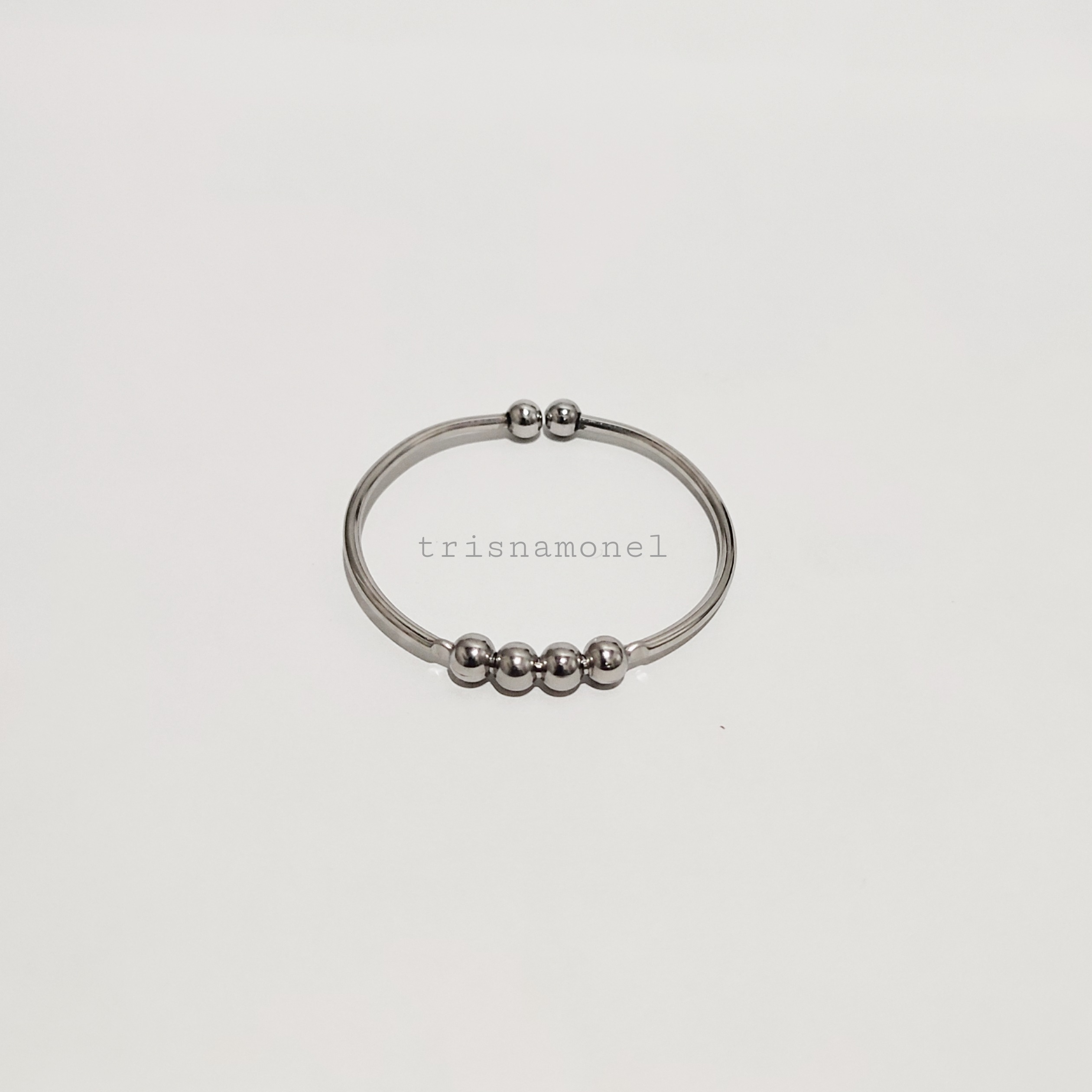 Produk gelang diatas dibuat dari bahan monel asli dengan ketebalan bahan 2 mm yang dikombinasi dengan bola mrica import ukuran 5 mm berkualitas.