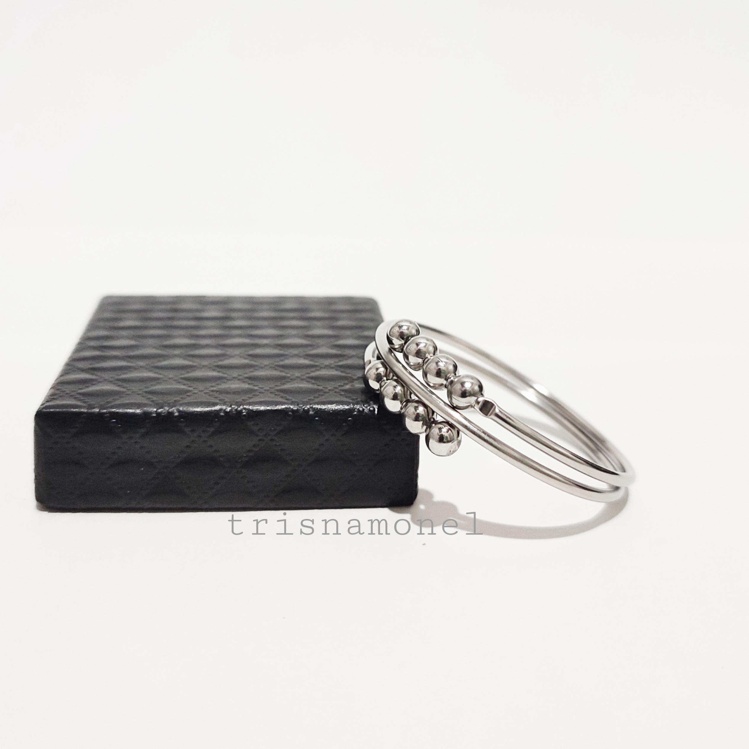 Produk gelang diatas dibuat dari bahan monel asli dengan ketebalan bahan 2 mm yang dikombinasi dengan bola mrica import ukuran 5 mm berkualitas.