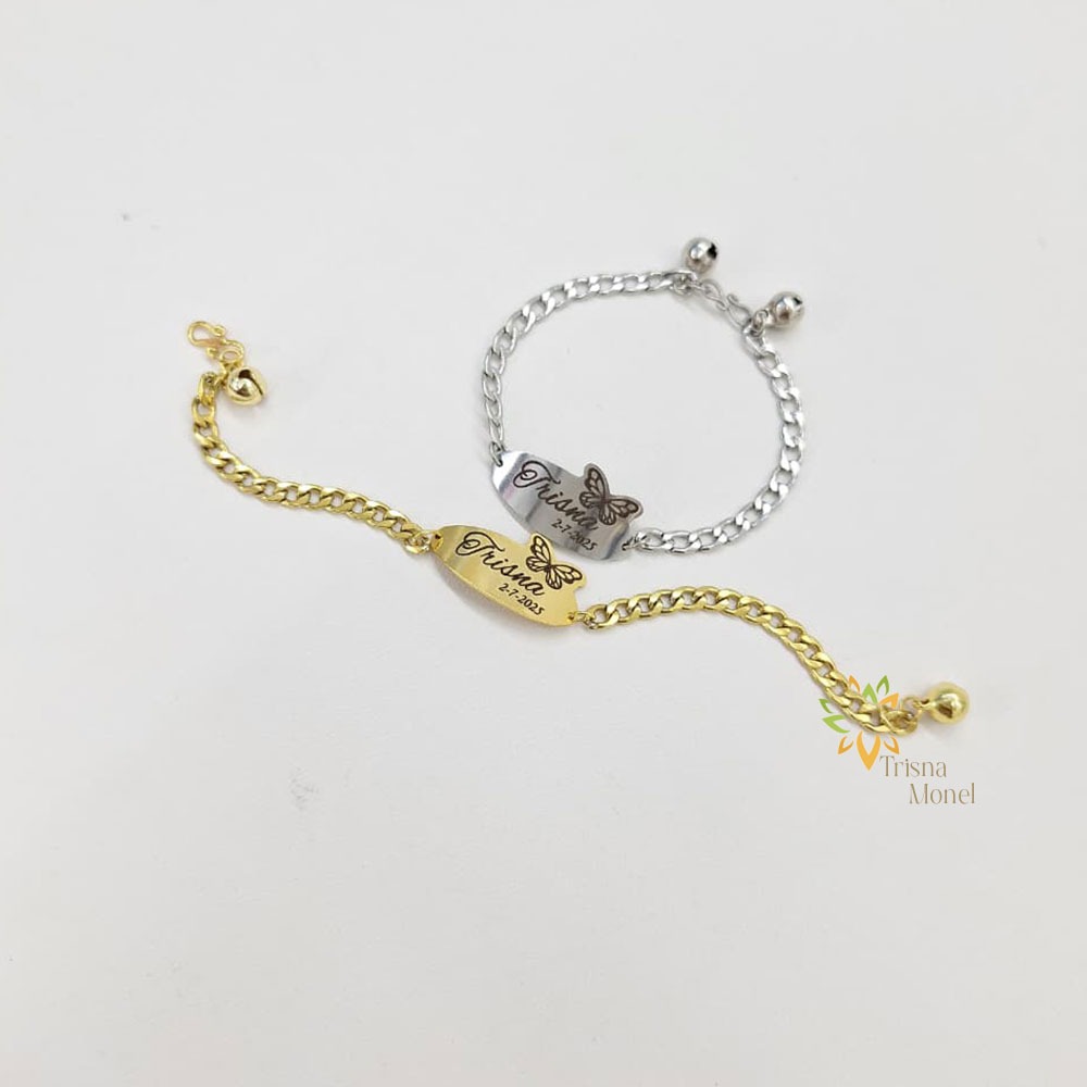- Gold : Dibuat dari bahan kuningan dengan ketebalan bahan 1 ml yang kami lapisi warna kuning emas/sepuh emas yang kami kombinasi dengan rantai titanium berkualitas.