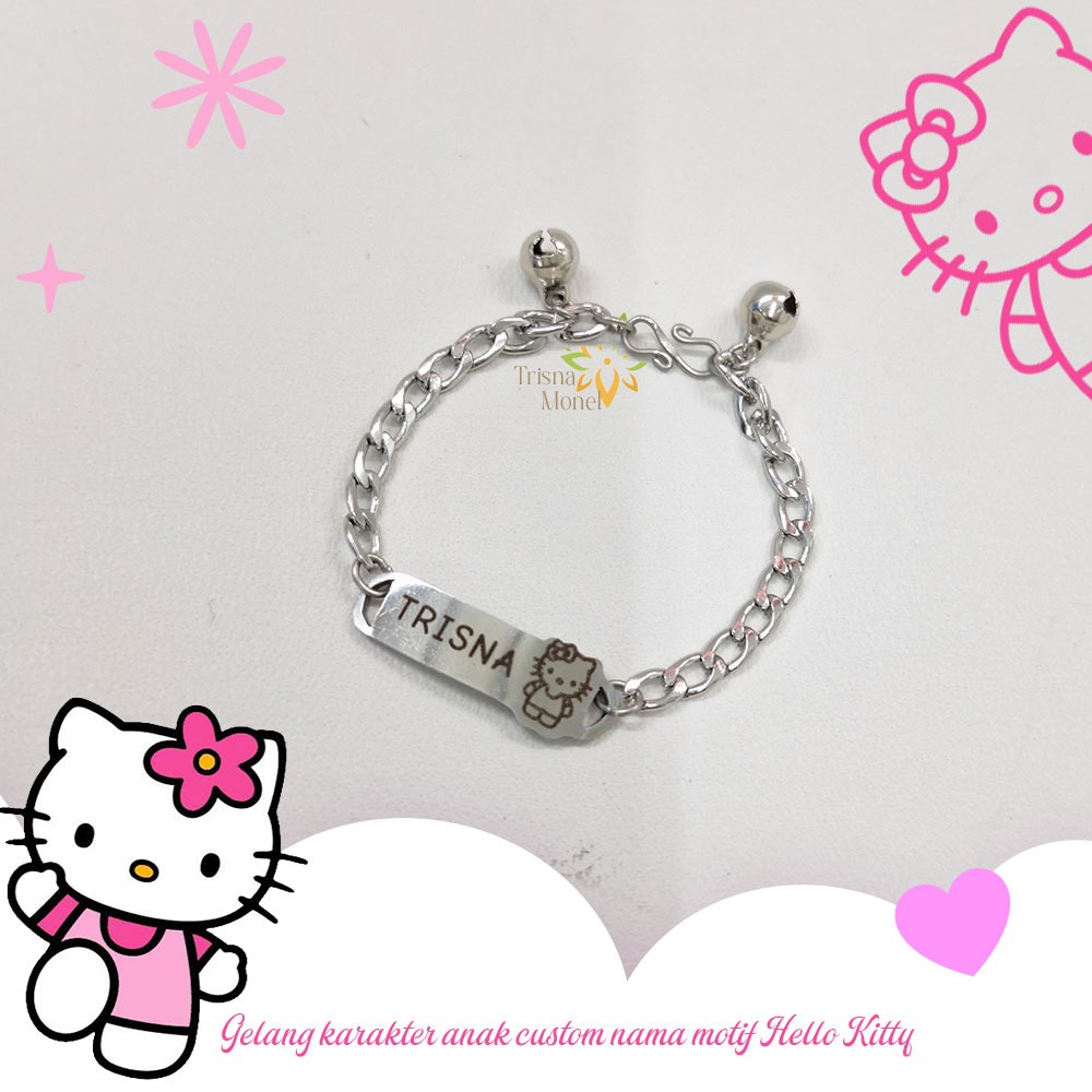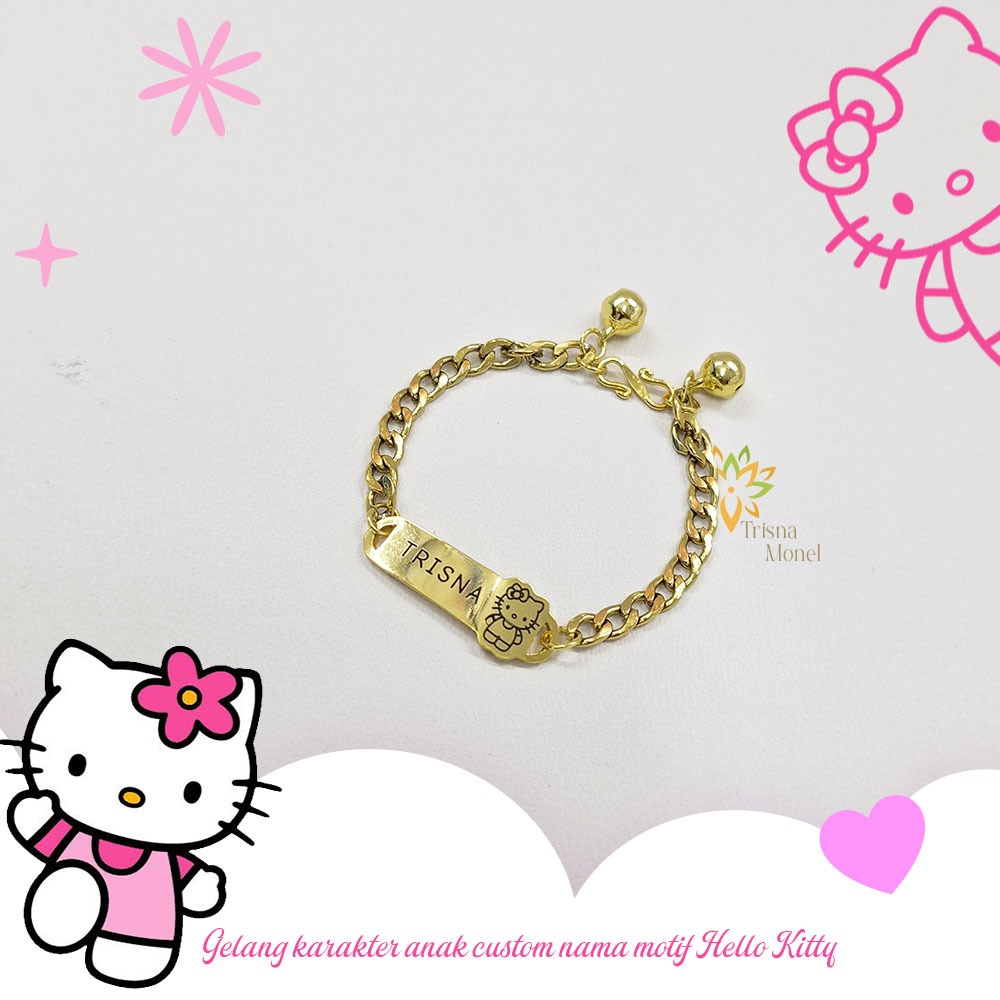 Gelang Custom Nama Anak Karakter Motif Hello Kitty Gold Dan Silver Murah