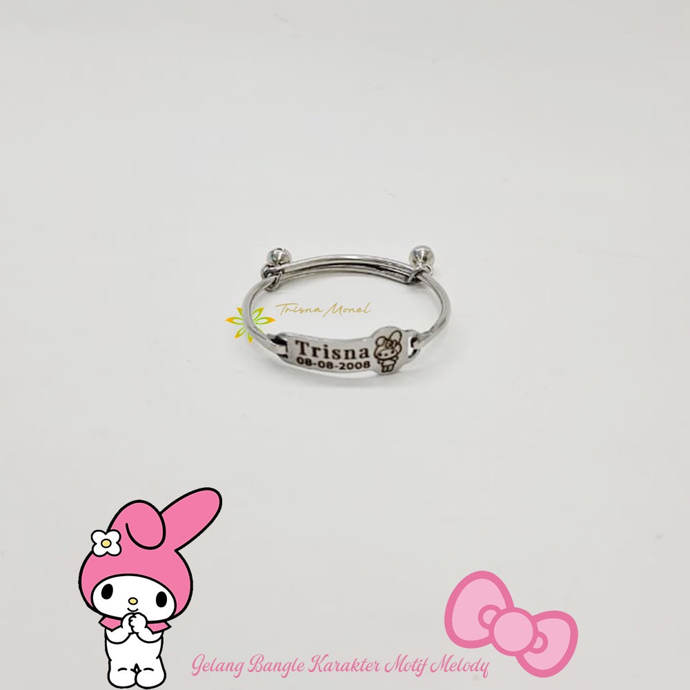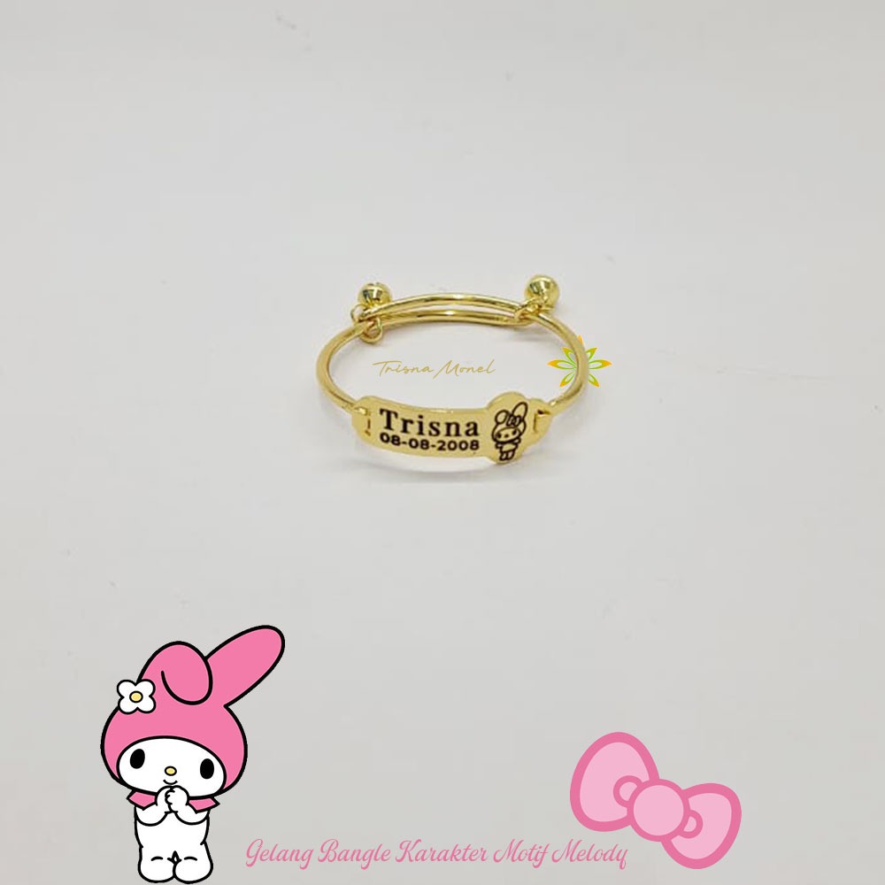 Adjustable free gelang monel !!! gelang karakter ukir nama size anak sampai dewasa motif Melody