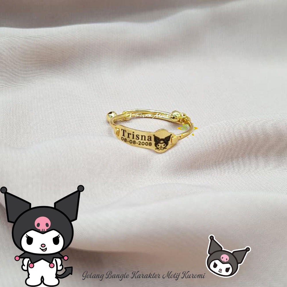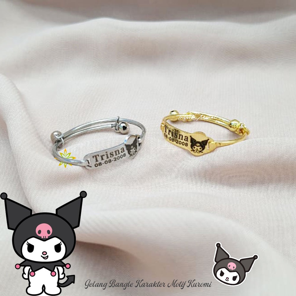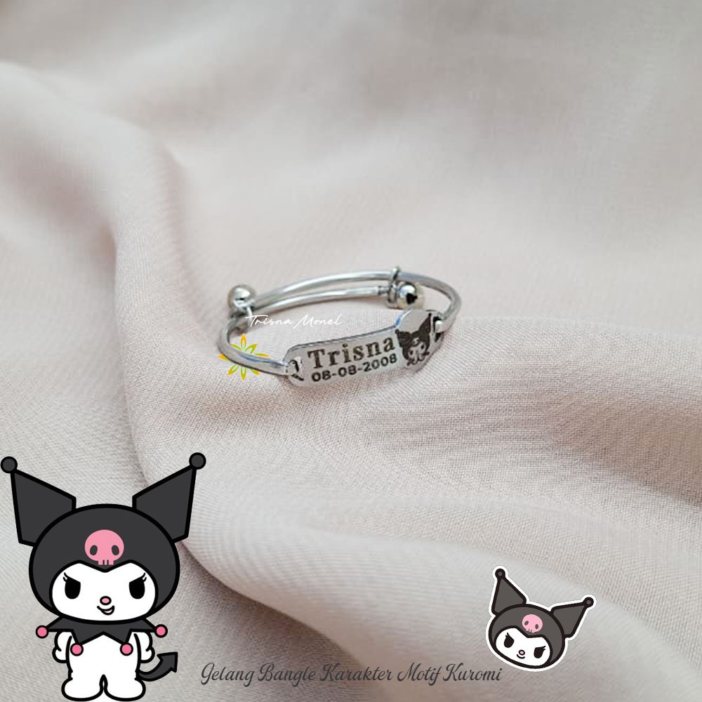 Adjustable free gelang monel !!! gelang karakter ukir nama size anak sampai dewasa motif kuromi
