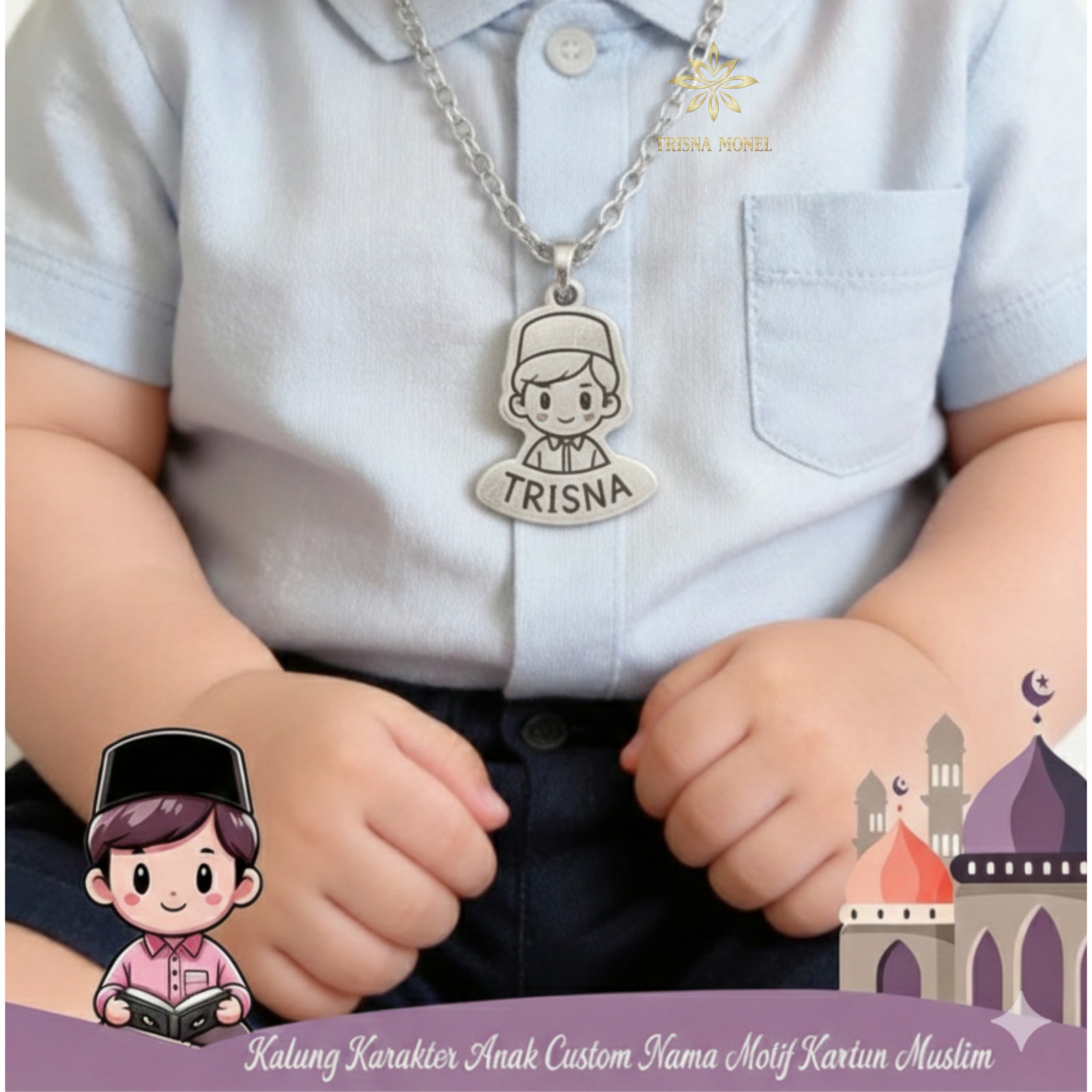 Kalung Karakter Anak Custom Nama Motif Muslim