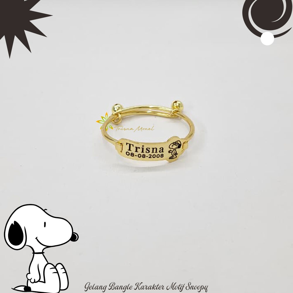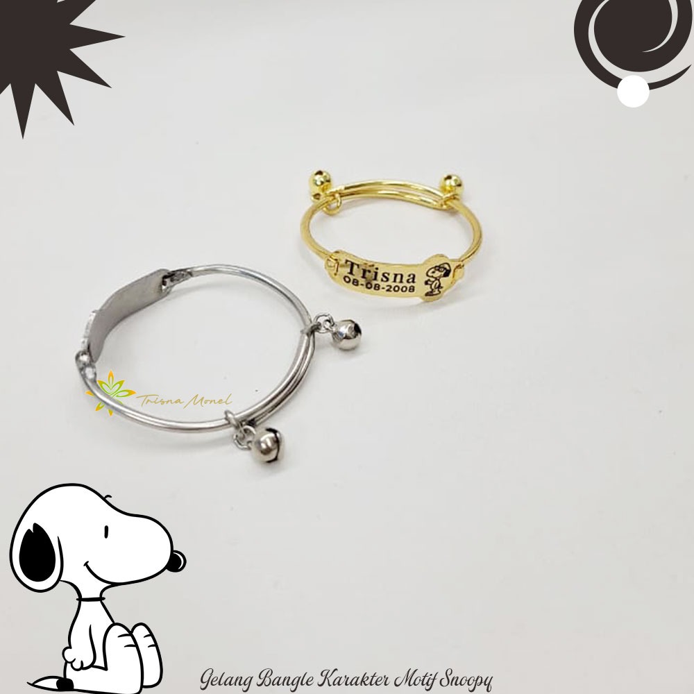 Adjustable free gelang monel !!! gelang karakter ukir nama size anak sampai dewasa motif Snoopy