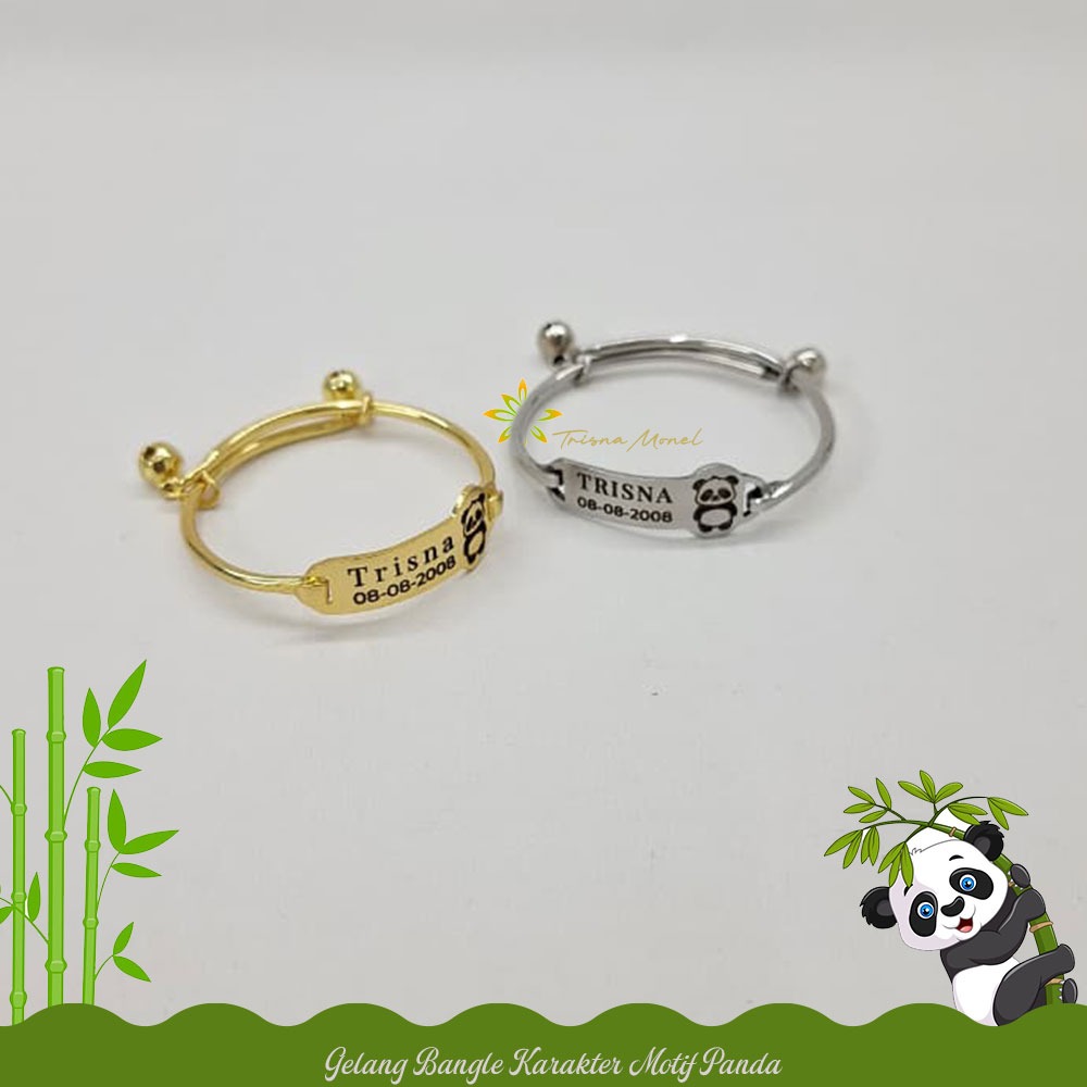 Adjustable free gelang monel !!! gelang karakter ukir nama size anak sampai dewasa motif Panda