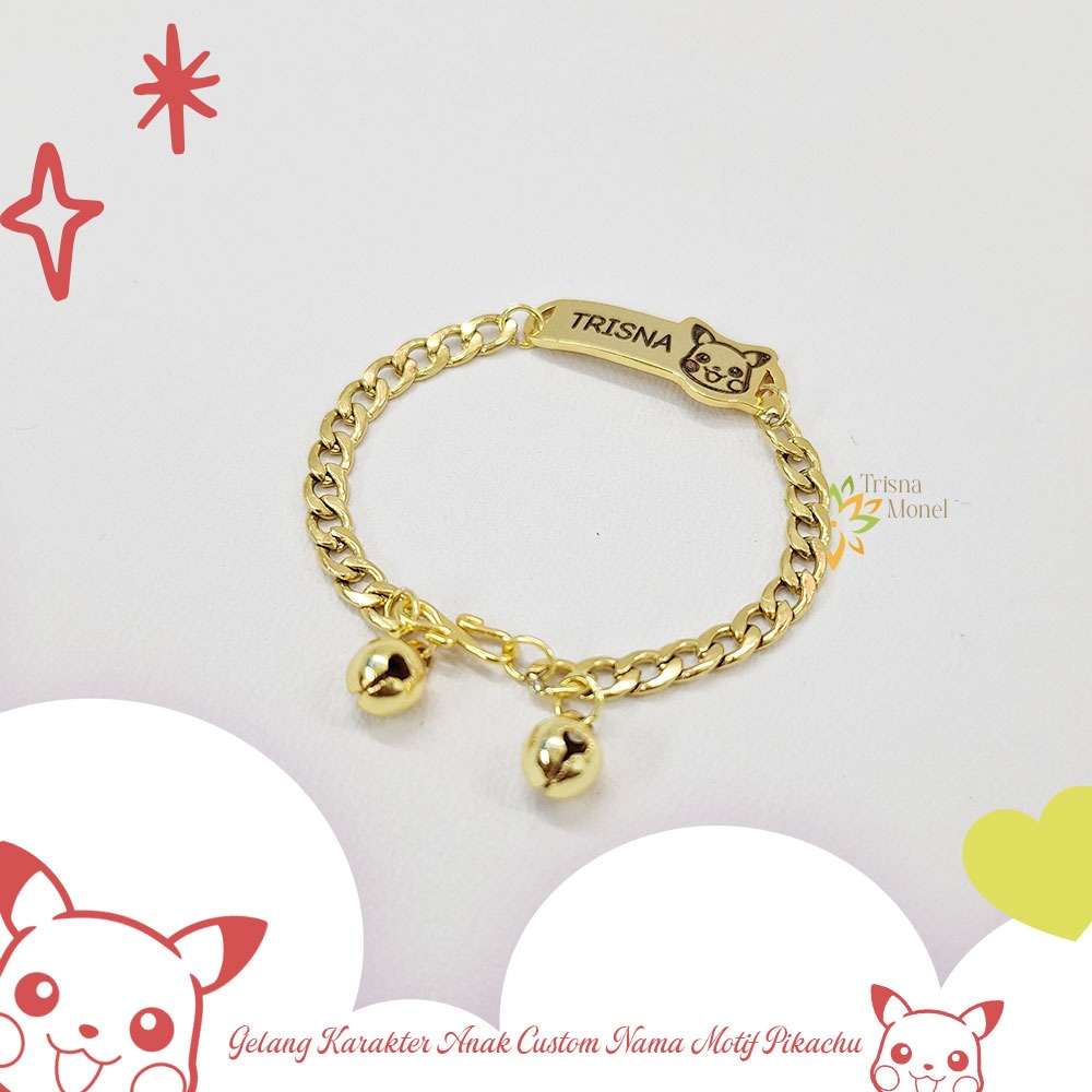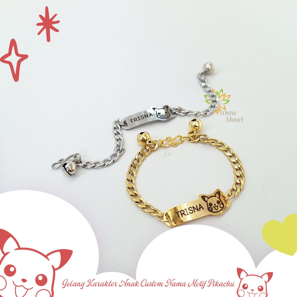 GELANG CUSTOM NAMA ANAK KARAKTER MOTIF PIKACHU GOLD DAN SILVER MURAH