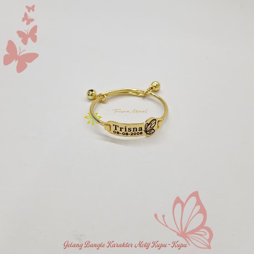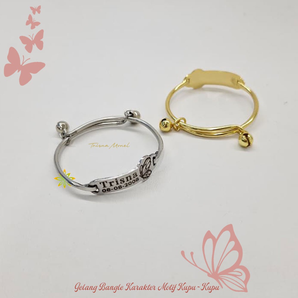 Adjustable free gelang monel !!! gelang karakter ukir nama size anak sampai dewasa motif Kupu - Kupu