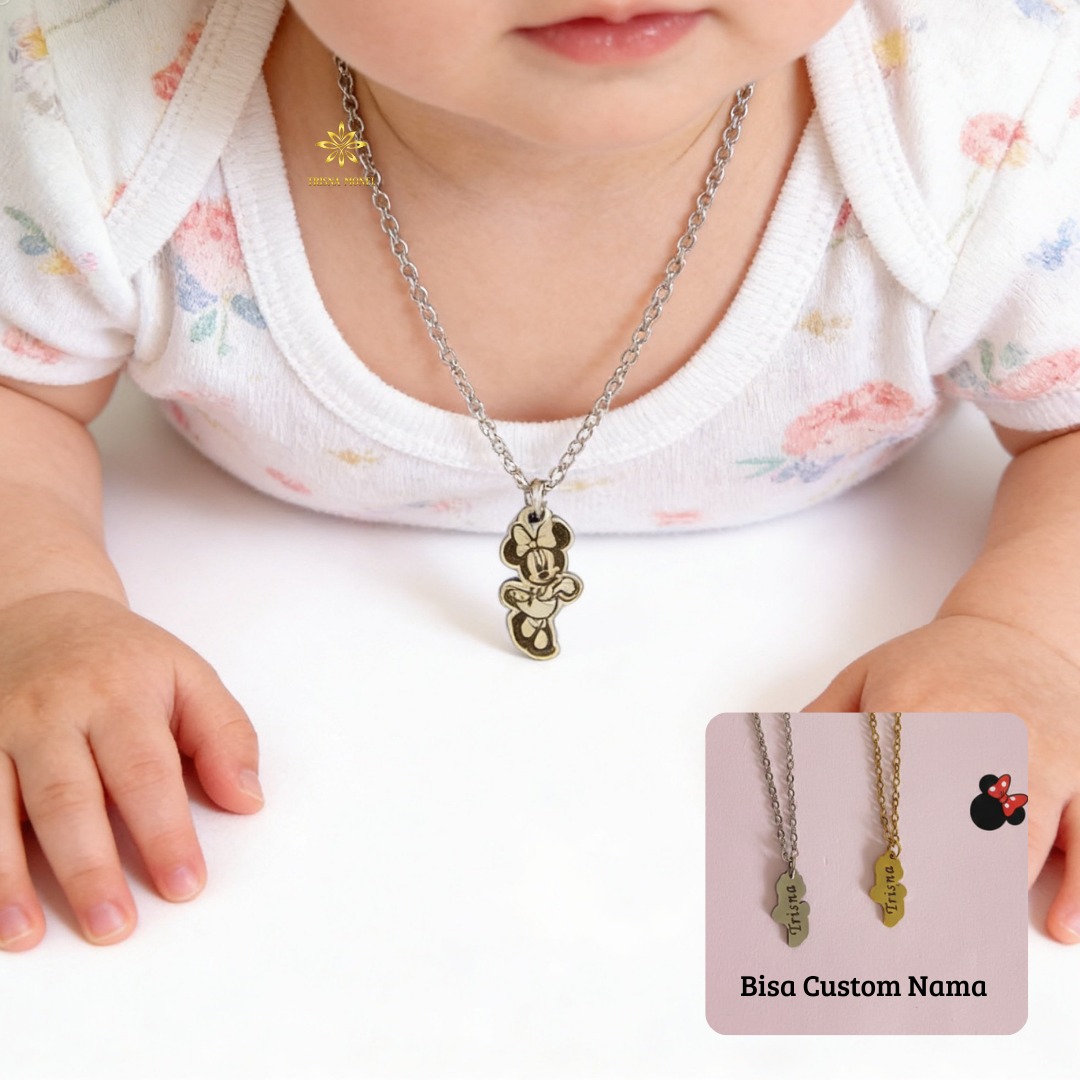 Kalung Liontin Custom Nama Premium Size Bayi Sampai Dewasa Motif Minnie Mouse