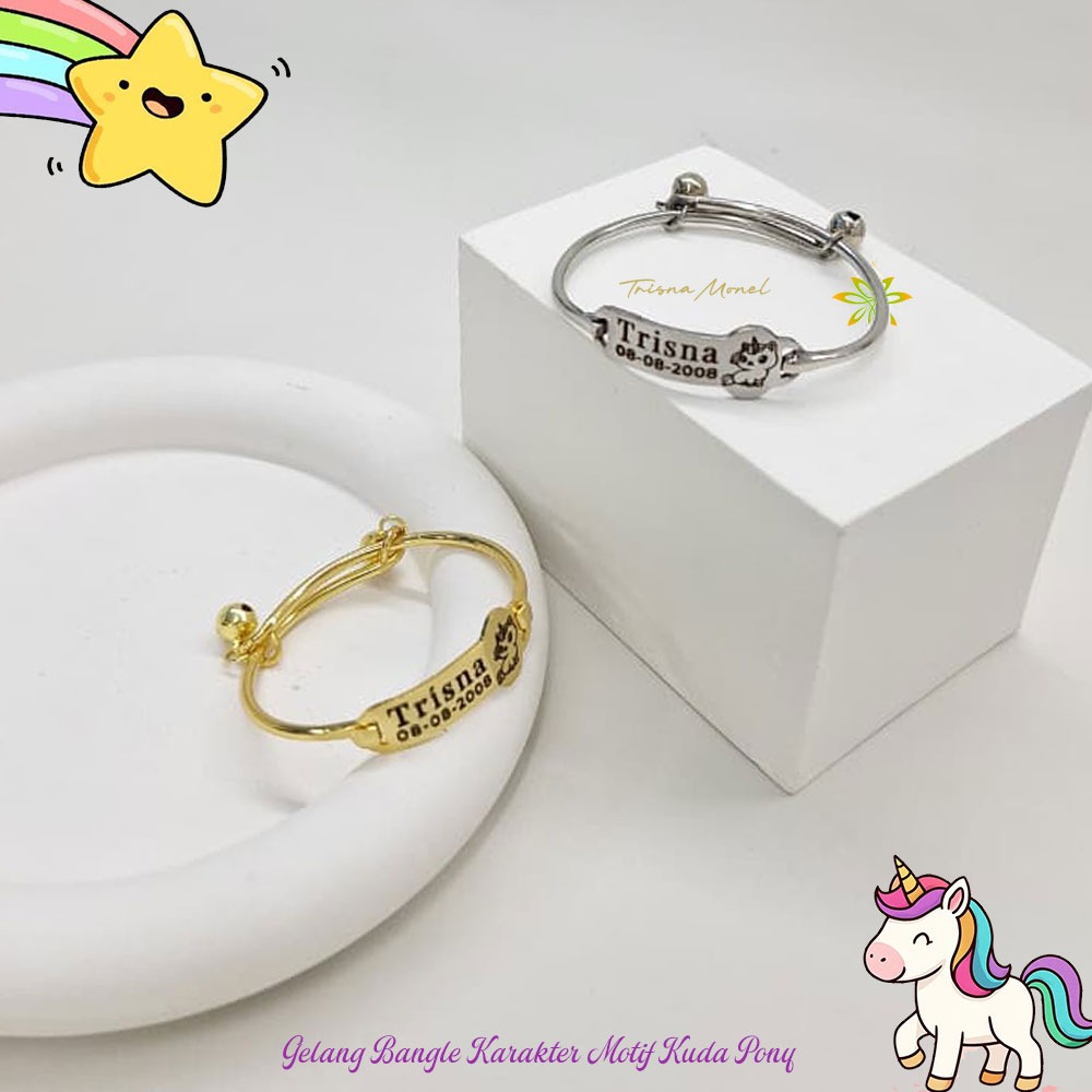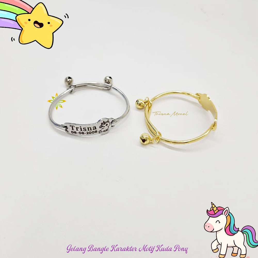Adjustable free gelang monel !!! gelang karakter ukir nama size anak sampai dewasa motif Kuda Pony